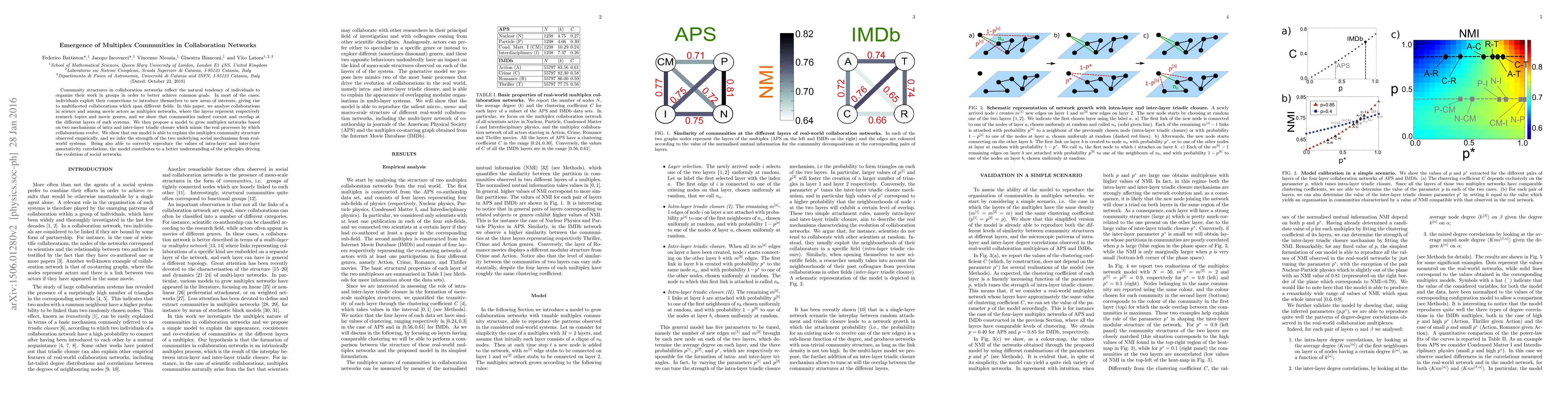 This paper investigates the community structures in multiplex collaboration networks of scientists and actors, demonstrating that communities overlap across different layers representing research topics and movie genres. It proposes a growth model for these networks based on intra and inter-layer triadic closure, successfully explaining observed community structures and social mechanisms.