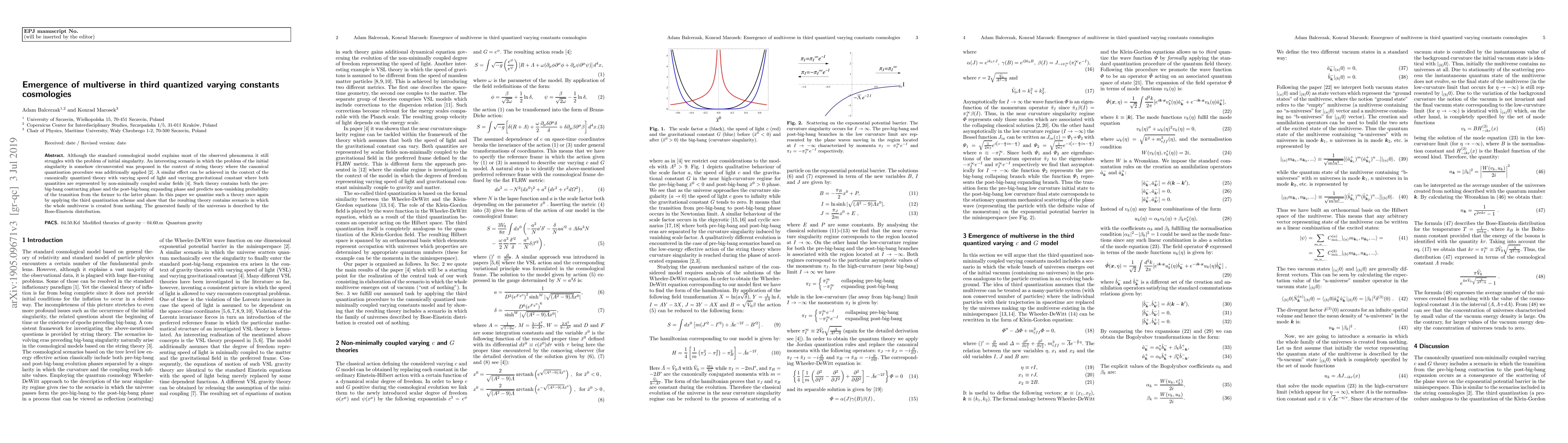 This paper explores a third quantized cosmological model with varying constants, suggesting a multiverse emergence from a vacuum state. It proposes a non-minimally coupled scalar field theory that circumvents the initial singularity problem, predicting a transition from a contracting to an expanding phase and generating a multiverse described by a Bose-Einstein distribution.