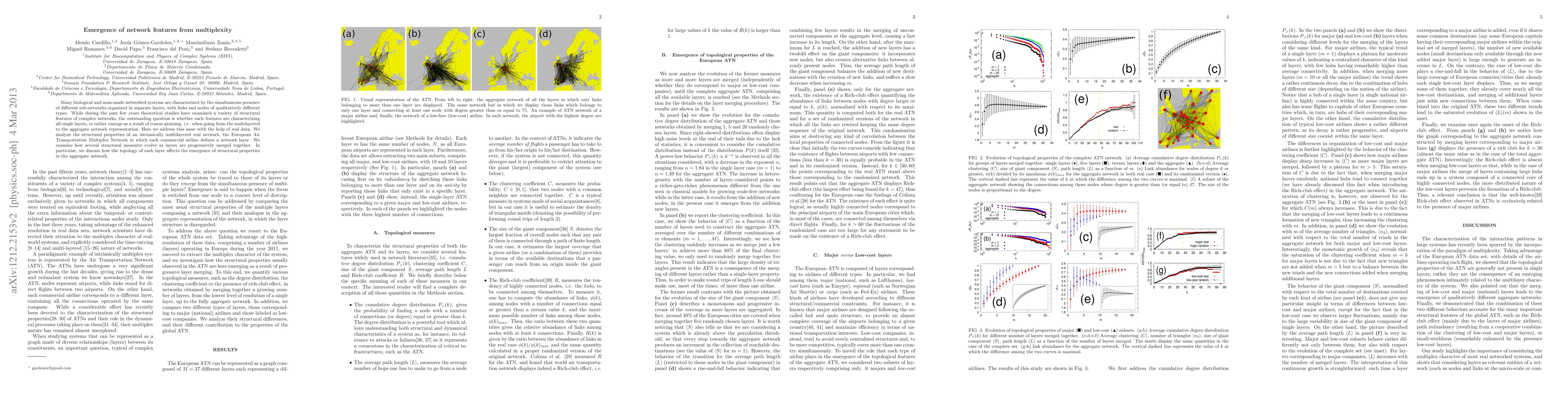 Many biological and man-made networked systems are characterized by the simultaneous presence of different sub-networks organized in separate layers, with links and nodes of qualitatively different types. While during the past few years theoretical studies have examined a variety of structural features of complex networks, the outstanding question is whether such features are characterizing all single layers, or rather emerge as a result of coarse-graining, i.e. when going from the multilayered to the aggregate network representation. Here we address this issue with the help of real data. We analyze the structural properties of an intrinsically multilayered real network, the European Air Transportation Multiplex Network in which each commercial airline defines a network layer. We examine how several structural measures evolve as layers are progressively merged together. In particular, we discuss how the topology of each layer affects the emergence of structural properties in the aggregate network.