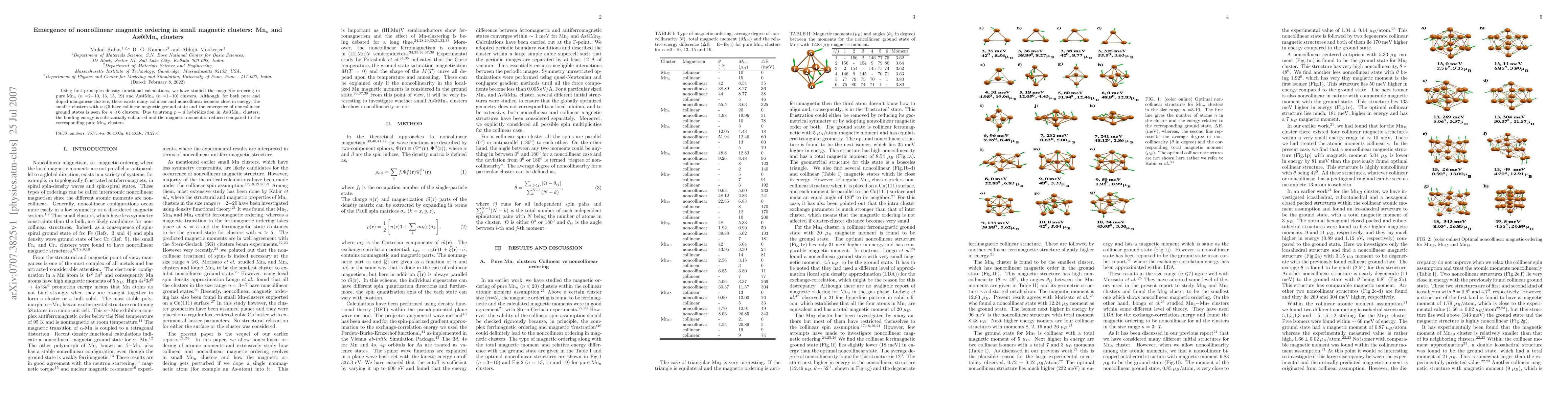 Using first-principles density functional calculations, we have studied the magnetic ordering in pure Mn$_n$ ($n=2-$10, 13, 15, 19) and As@Mn$_n$ ($n=1-$10) clusters. Although, for both pure and doped manganese clusters, there exists many collinear and noncollinear isomers close in energy, the smaller clusters with $n\leqslant$5 have collinear magnetic ground state and the emergence of noncollinear ground states is seen for $n\geqslant$6 clusters. Due to strong $p-d$ hybridization in As@Mn$_n$ clusters, the binding energy is substantially enhanced and the magnetic moment is reduced compared to the corresponding pure Mn$_n$ clusters.