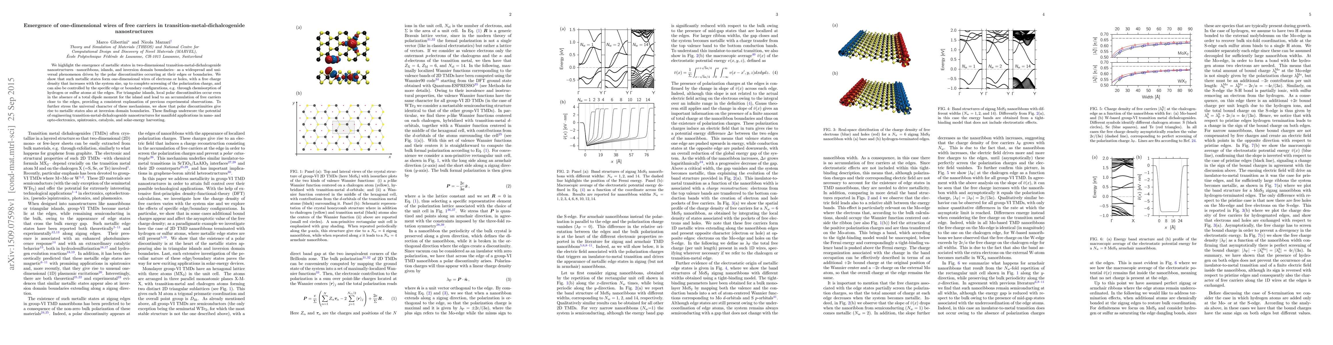 This paper explores the emergence of metallic states in transition-metal-dichalcogenide nanostructures, revealing the formation of one-dimensional wires of free carriers driven by polar discontinuities at edges or boundaries. These metallic states can be manipulated through edge configurations, highlighting the potential for applications in various nano- and opto-electronics fields.