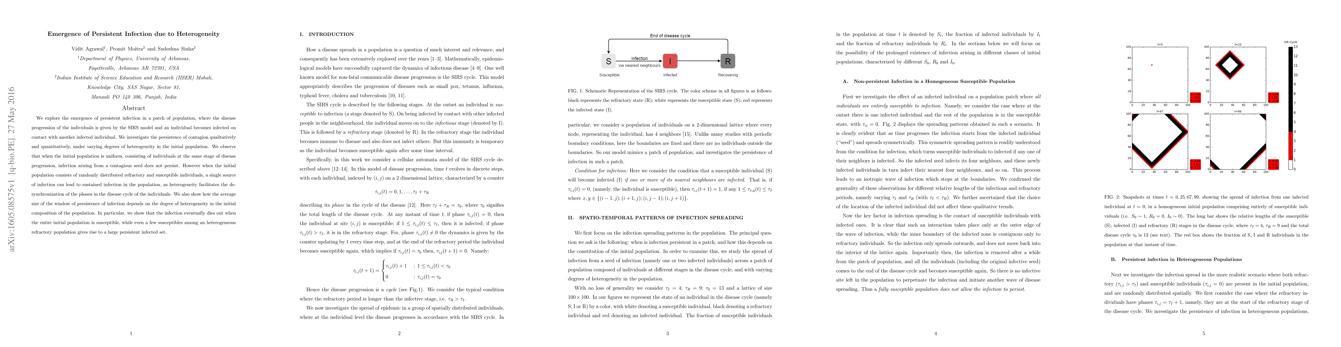 A study found that a persistent infection can emerge in a population when individuals have different stages of disease progression, increasing the likelihood of sustained transmission. Heterogeneity in the initial population size can lead to persistent infections, even with few susceptible individuals among a refractory group.