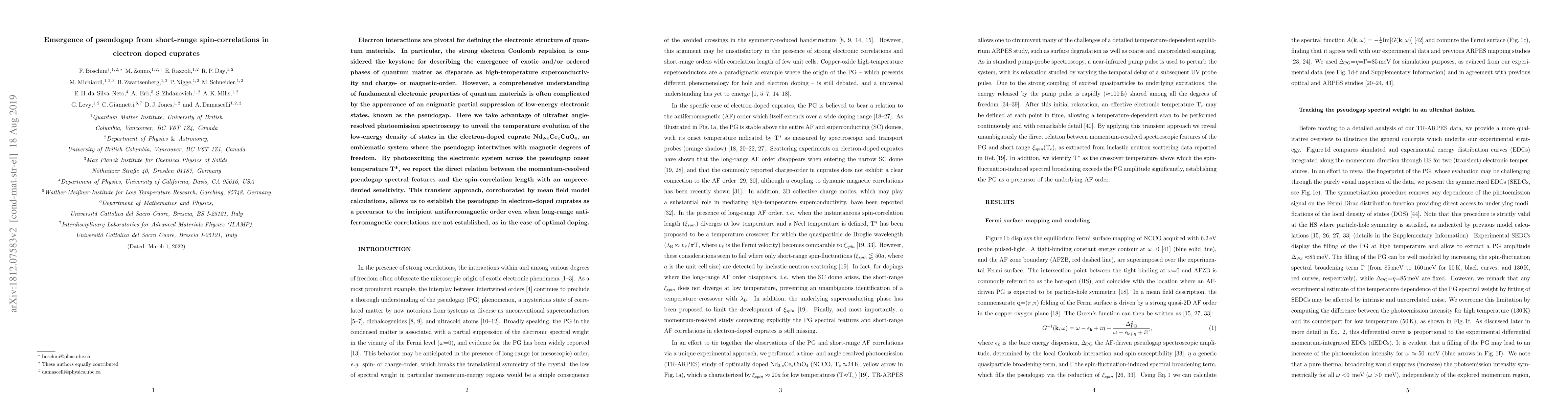This paper uses ultrafast angle-resolved photoemission spectroscopy to show that the pseudogap in electron-doped cuprates, like Nd$_2$-xCe$_x$CuO$_4$, emerges from short-range spin correlations, indicating it as a precursor to antiferromagnetic order even without long-range magnetic correlations.