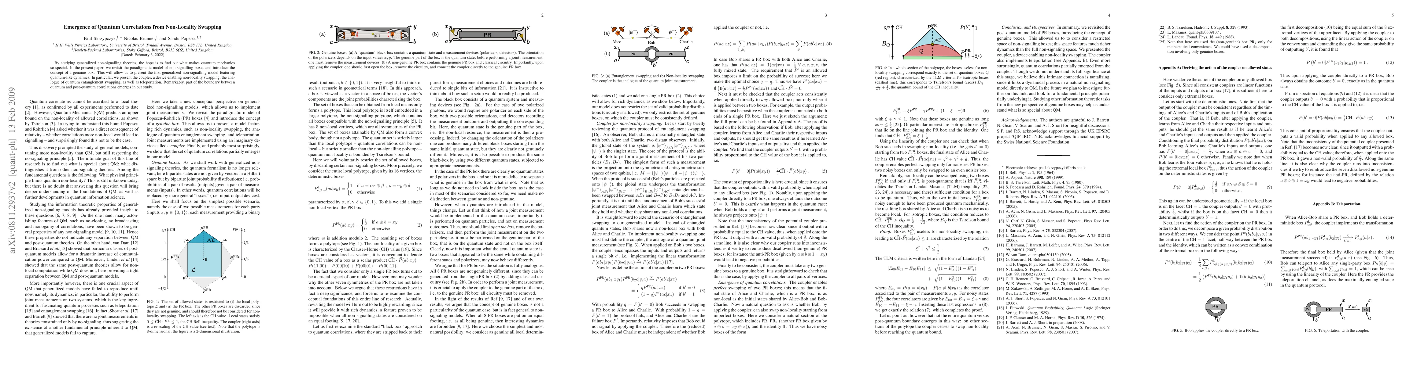This paper explores generalized non-signalling theories to understand quantum mechanics' uniqueness by introducing a genuine box and a coupler device for non-locality swapping. It reveals a boundary between quantum and post-quantum correlations, highlighting the emergence of quantum-like dynamics.