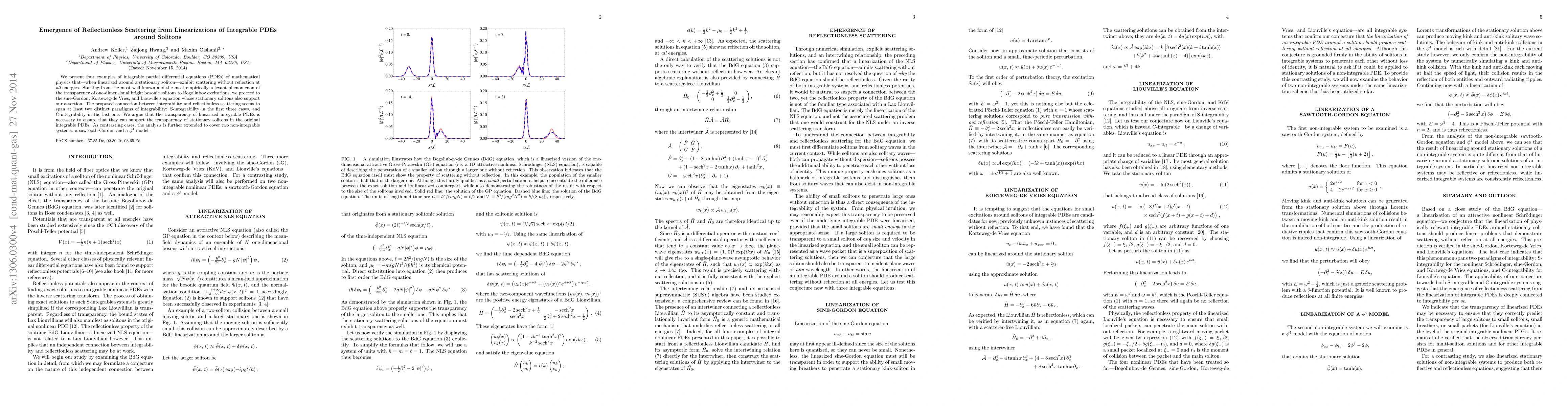 This paper explores how linearizations of integrable PDEs around solitons exhibit reflectionless scattering at all energies, demonstrating this phenomenon through examples from the sine-Gordon, KdV, and Liouville equations. It contrasts these with non-integrable systems that do not show such transparency, suggesting a link between integrability and reflectionless scattering.