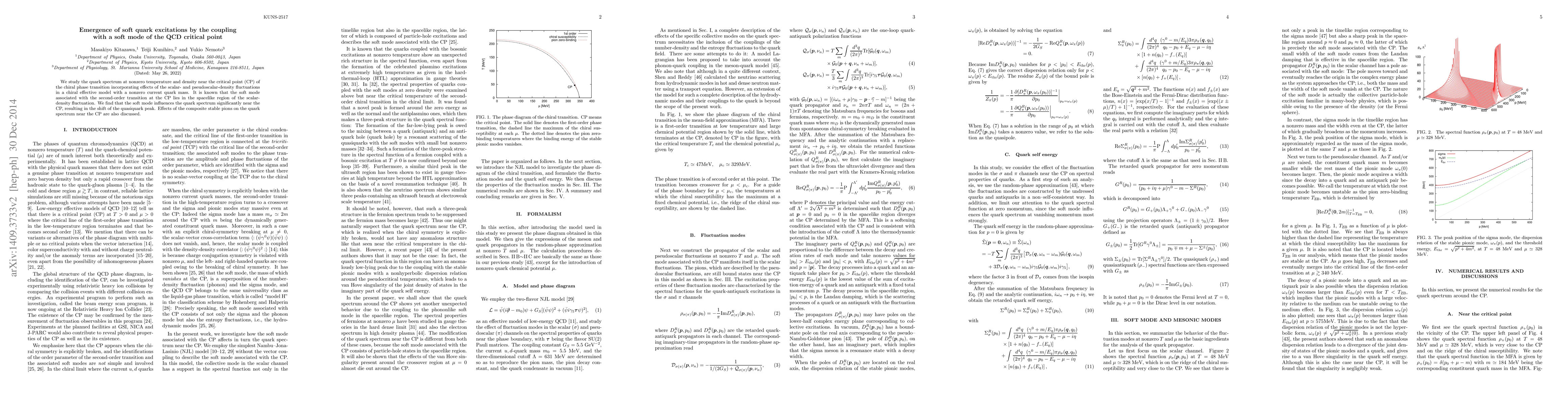 This paper investigates how quark excitations are affected by coupling with a soft mode near the QCD critical point, revealing significant shifts in the quasiquark spectrum due to scalar-density fluctuations, and discusses the influence of stable pions on the quark spectrum.