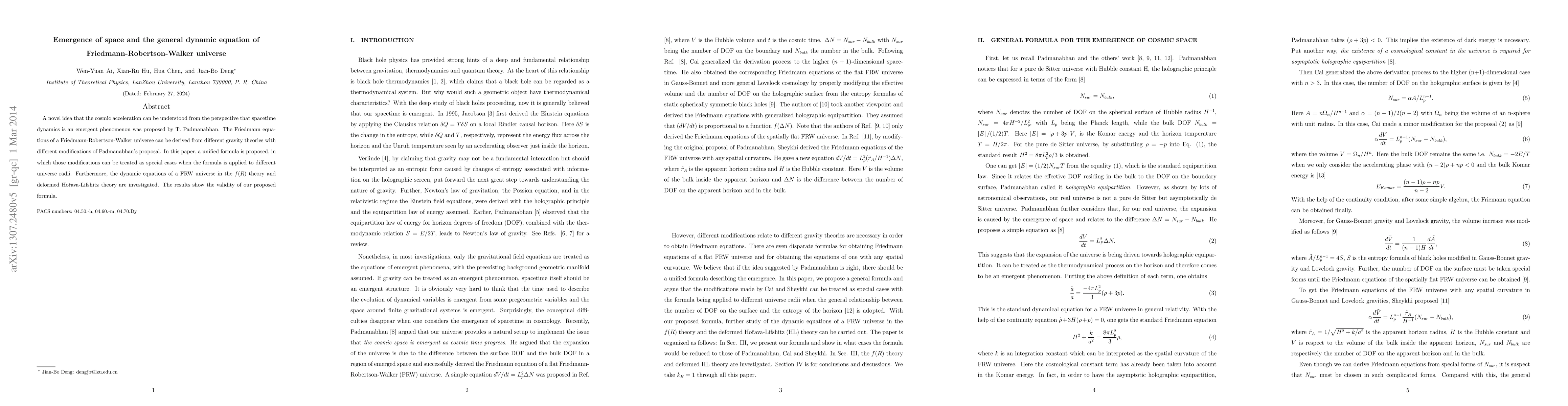 A unified formula for the Friedmann-Robertson-Walker universe is proposed, showing validity in different gravity theories, including $f(R)$ theory and deformed Ho{ {a}}rava-Lifshitz theory.