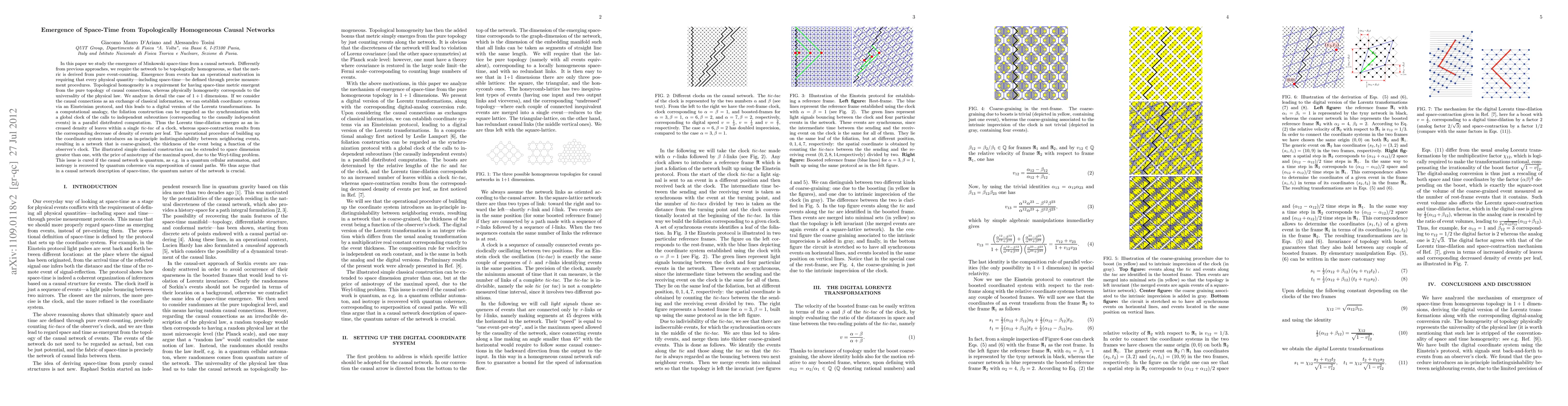 Researchers explored how space-time emerges from a causal network with topological homogeneity, leading to digital versions of Lorentz transformations and a new understanding of time dilation and space contraction.