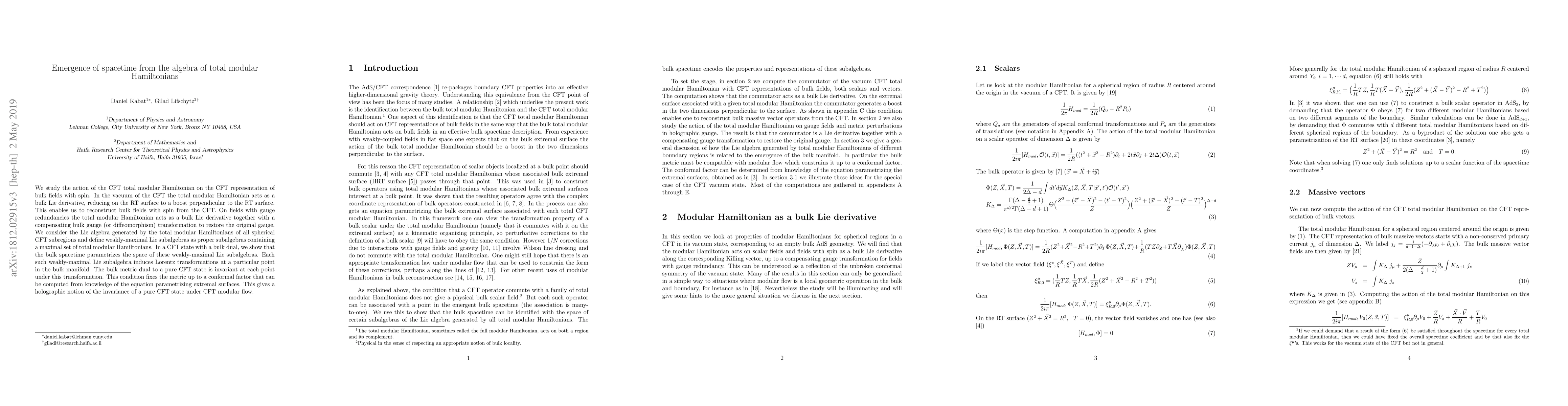 This paper explores how the algebra of total modular Hamiltonians in conformal field theories (CFT) can reconstruct bulk fields with spin and reveals that bulk spacetime emerges from the space of weakly-maximal Lie subalgebras of these Hamiltonians, with each subalgebra inducing Lorentz transformations that leave the bulk metric invariant.