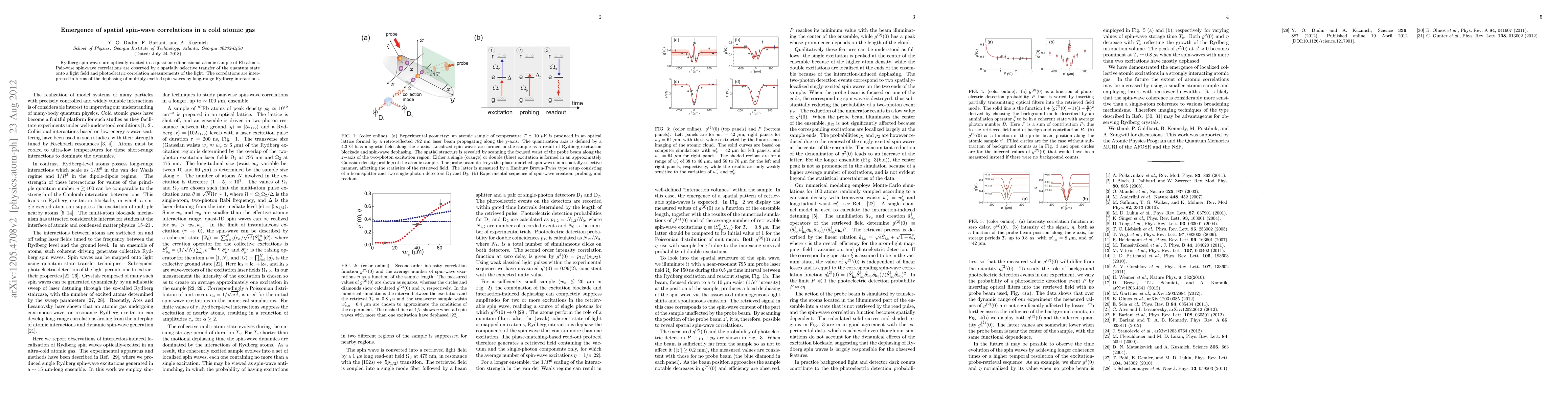 This study investigates Rydberg spin waves in a quasi-one-dimensional Rb atomic gas, revealing spatial spin-wave correlations through selective quantum state transfer and photoelectric correlation measurements. The observed correlations are attributed to the dephasing of spin waves due to long-range Rydberg interactions.