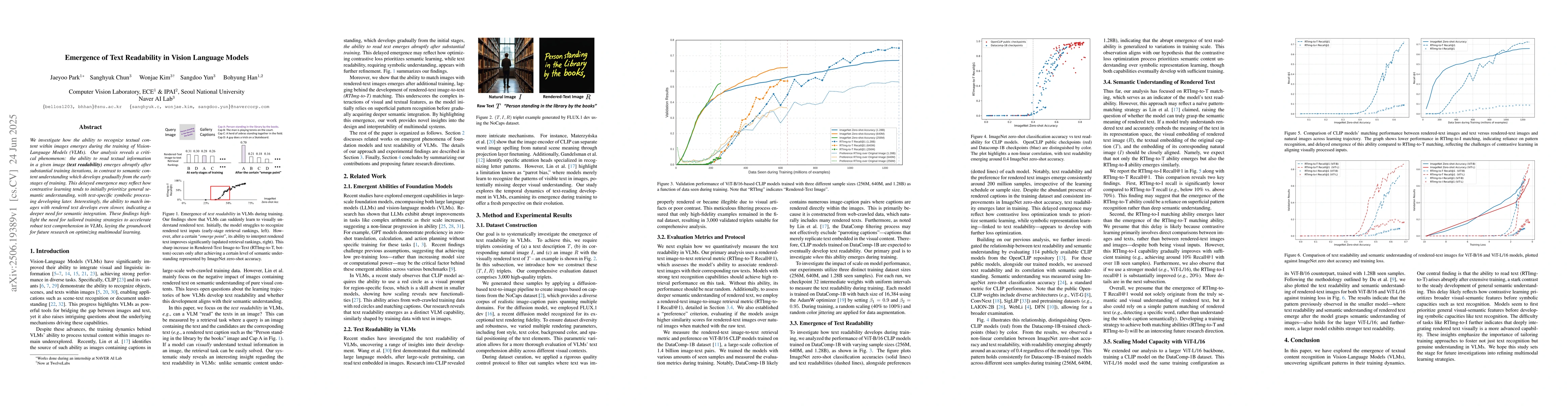 The research explores the development of text recognition in images by Vision-Language Models (VLMs). It discovers that while semantic understanding grows steadily, the ability to 'read' text (text readability) emerges suddenly post-extensive training. This suggests contrastive learning initially focuses on general semantics, with text-specific processing arising later. The matching of images with rendered text comprehension develops even more slowly, indicating a need for deeper semantic integration. The study calls for customized training methods to enhance text comprehension in VLMs, paving the way for future multimodal learning advancements.