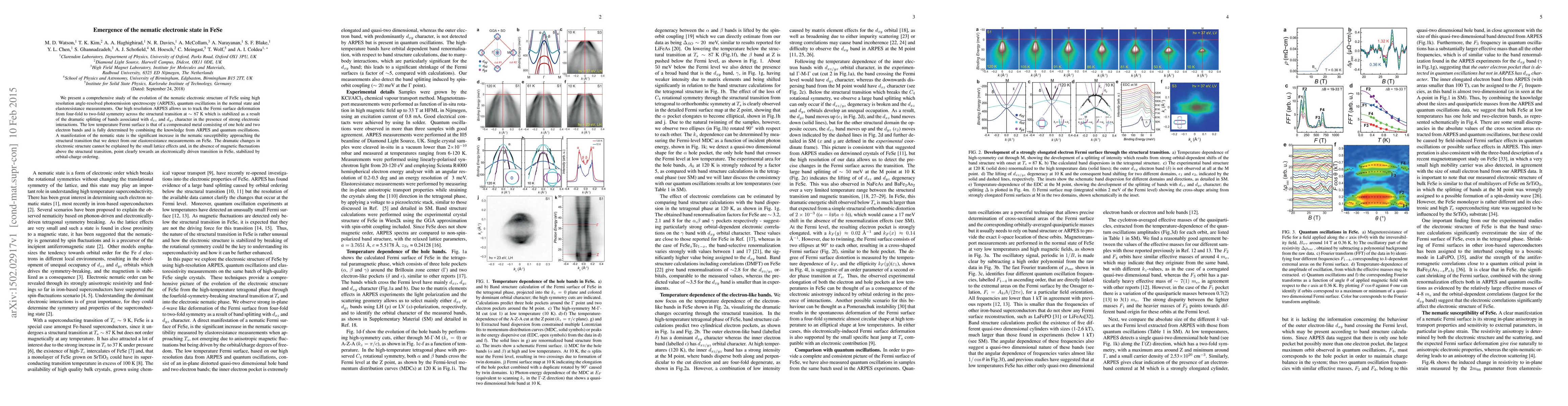This study reveals the emergence of a nematic electronic state in FeSe via high resolution ARPES, quantum oscillations, and elastoresistance measurements, showing significant Fermi surface deformation and orbital-charge ordering driving the transition. The nematic susceptibility increases markedly near the structural transition, indicating an electronically-driven change.