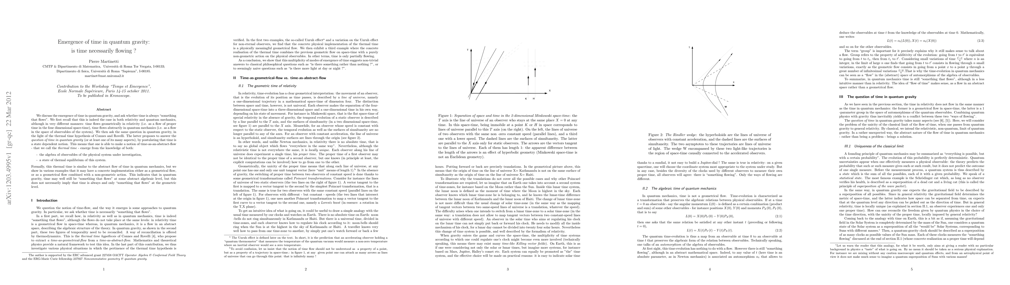 The paper discusses the emergence of time in quantum gravity, exploring whether time is necessarily 'something that flows', by examining the thermal time hypothesis of Connes and Rovelli.