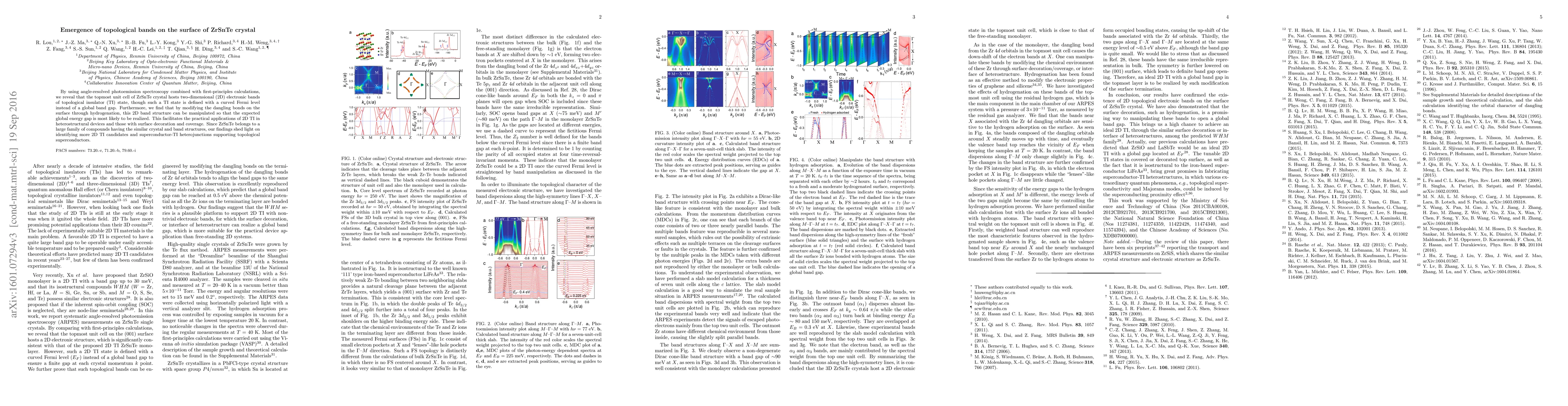 By using angle-resolved photoemission spectroscopy combined with first-principles calculations, we reveal that the topmost unit cell of ZrSnTe crystal hosts two-dimensional (2D) electronic bands of topological insulator (TI) state, though such a TI state is defined with a curved Fermi level instead of a global band gap. Furthermore, we find that by modifying the dangling bonds on the surface through hydrogenation, this 2D band structure can be manipulated so that the expected global energy gap is most likely to be realized. This facilitates the practical applications of 2D TI in heterostructural devices and those with surface decoration and coverage. Since ZrSnTe belongs to a large family of compounds having the similar crystal and band structures, our findings shed light on identifying more 2D TI candidates and superconductor-TI heterojunctions supporting topological superconductors.