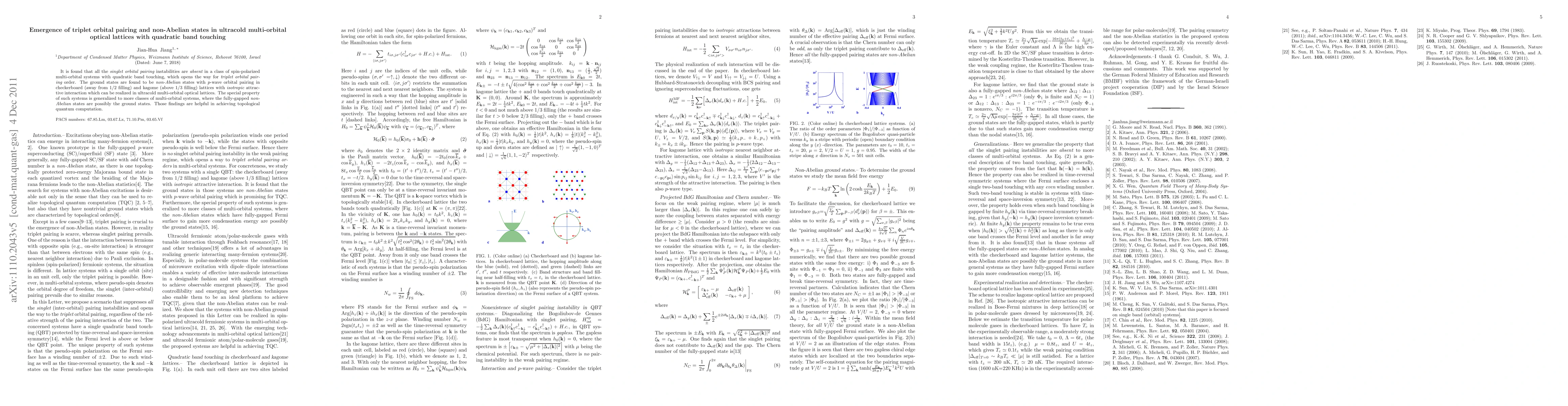 This paper explores the emergence of triplet orbital pairing and non-Abelian states in ultracold multi-orbital optical lattices, revealing that singlet orbital pairing instabilities are absent, leading to p-wave orbital pairing and fully-gapped non-Abelian states in specific lattice geometries. These findings are significant for topological quantum computation.