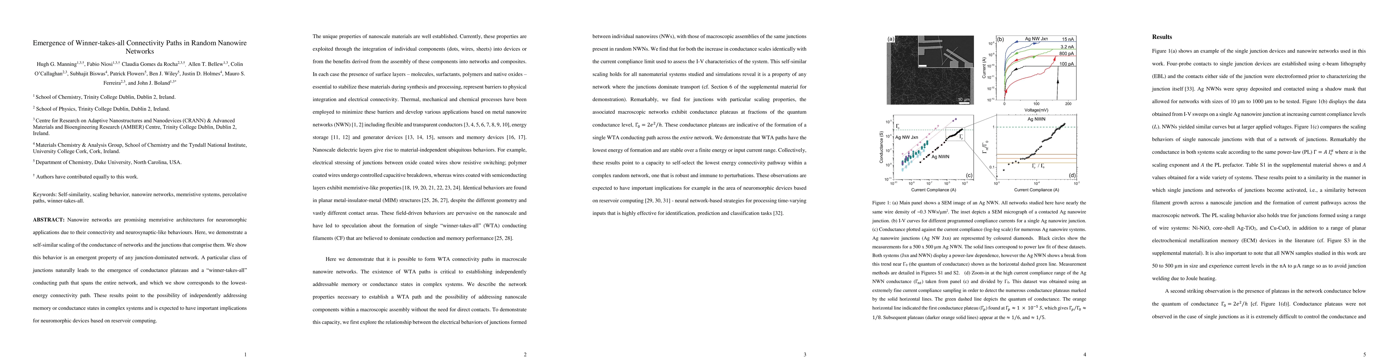 This paper demonstrates that nanowire networks exhibit self-similar scaling in conductance, revealing a "winner-takes-all" connectivity path due to junction-dominated behavior. This emergent property suggests potential for independently addressing memory states in neuromorphic devices, enhancing reservoir computing applications.