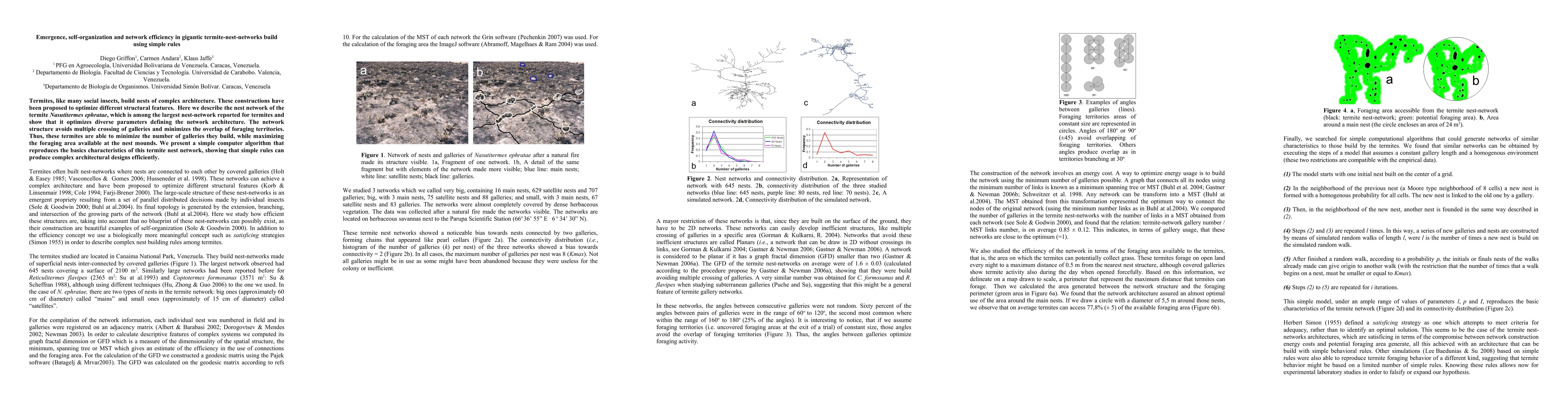 Termites build complex nest networks that optimize structural features like gallery layout and foraging areas using simple rules. A computer algorithm reproduces these designs, showing that simple rules can create efficient and diverse architectural layouts.