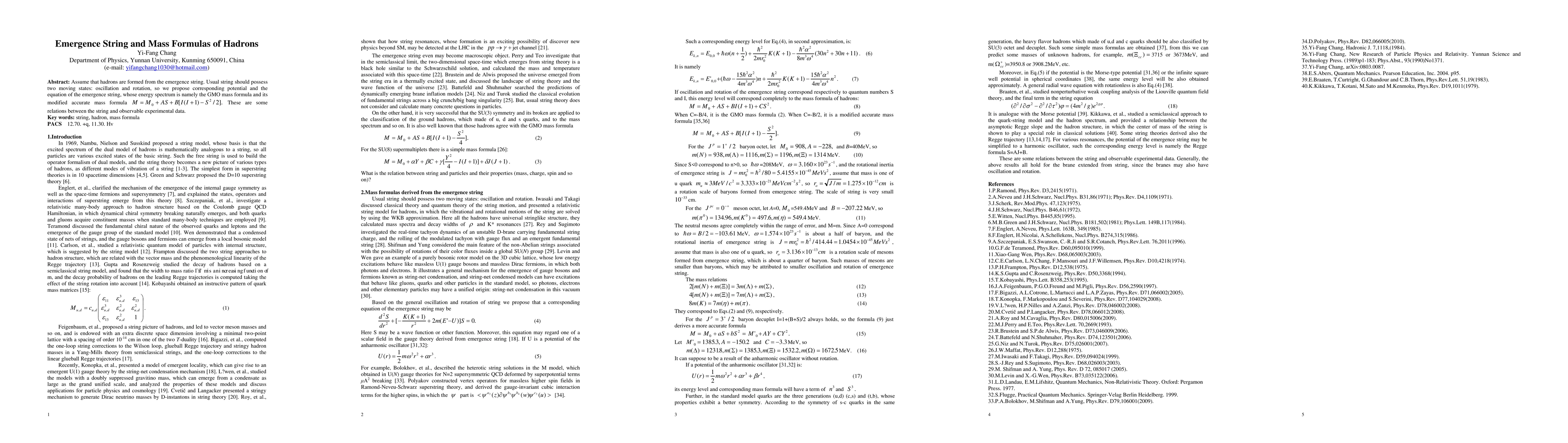 Assume that hadrons are formed from the emergence string. Usual string should possess two moving states: oscillation and rotation, so we propose corresponding potential and the equation of the emergence string, whose energy spectrum is namely the GMO mass formula and its modified accurate mass formula. These are some relations between the string and observable experimental data.