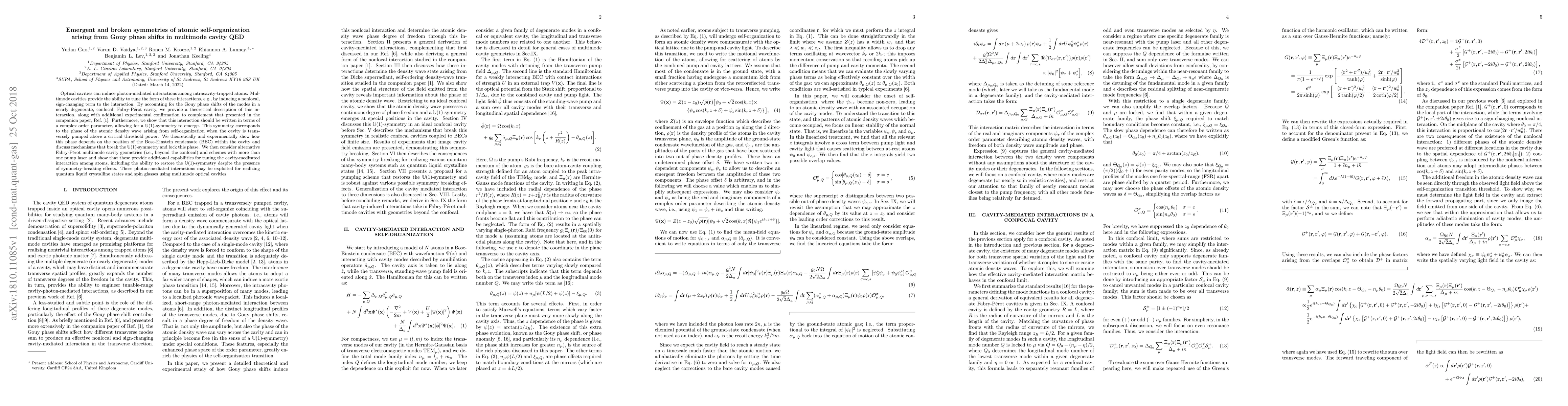 This paper explores how Gouy phase shifts in multimode cavity QED lead to emergent U(1)-symmetry in atomic self-organization, driven by photon-mediated interactions. It also investigates mechanisms that break this symmetry and proposes alternative cavity geometries to restore symmetry, potentially for quantum liquid crystalline states.