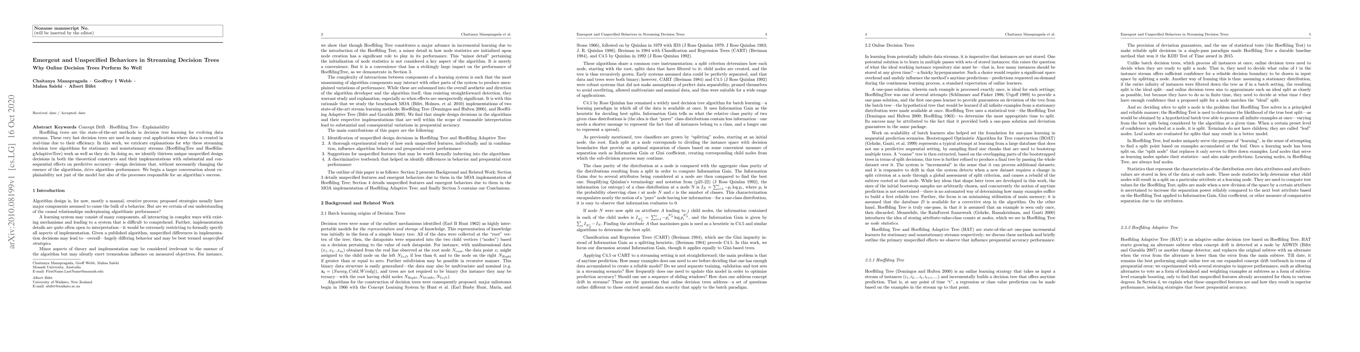 Hoeffding trees are the state-of-the-art methods in decision tree learning for evolving data streams. These very fast decision trees are used in many real applications where data is created in real-time due to their efficiency. In this work, we extricate explanations for why these streaming decision tree algorithms for stationary and nonstationary streams (HoeffdingTree and HoeffdingAdaptiveTree) work as well as they do. In doing so, we identify thirteen unique unspecified design decisions in both the theoretical constructs and their implementations with substantial and consequential effects on predictive accuracy---design decisions that, without necessarily changing the essence of the algorithms, drive algorithm performance. We begin a larger conversation about explainability not just of the model but also of the processes responsible for an algorithm's success.