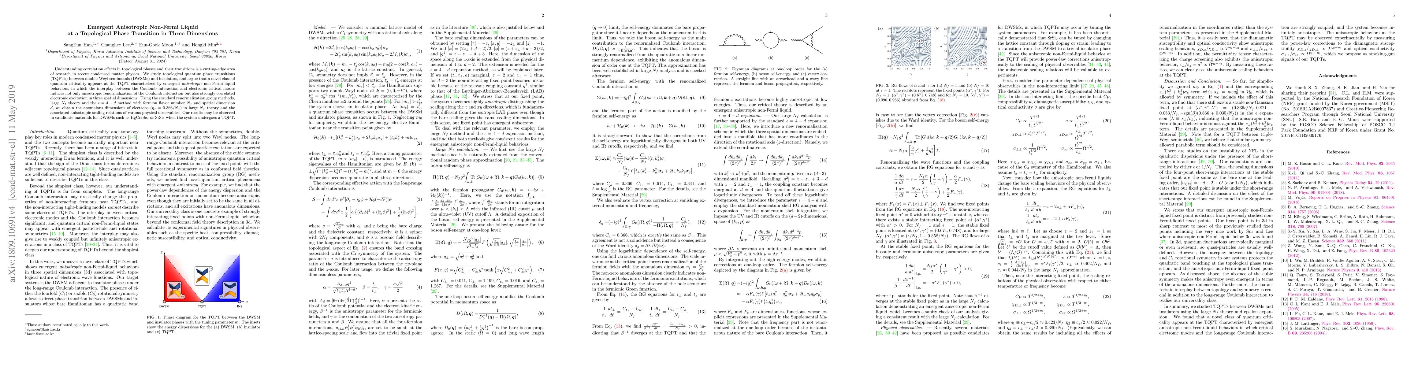 This paper investigates topological quantum phase transitions between double-Weyl semimetals and insulators, revealing a novel quantum criticality characterized by emergent anisotropic non-Fermi liquid behaviors. The study uses renormalization group methods to show that the interplay of Coulomb interaction and critical electronic modes leads to anisotropic renormalization and strongly correlated excitations in three dimensions.