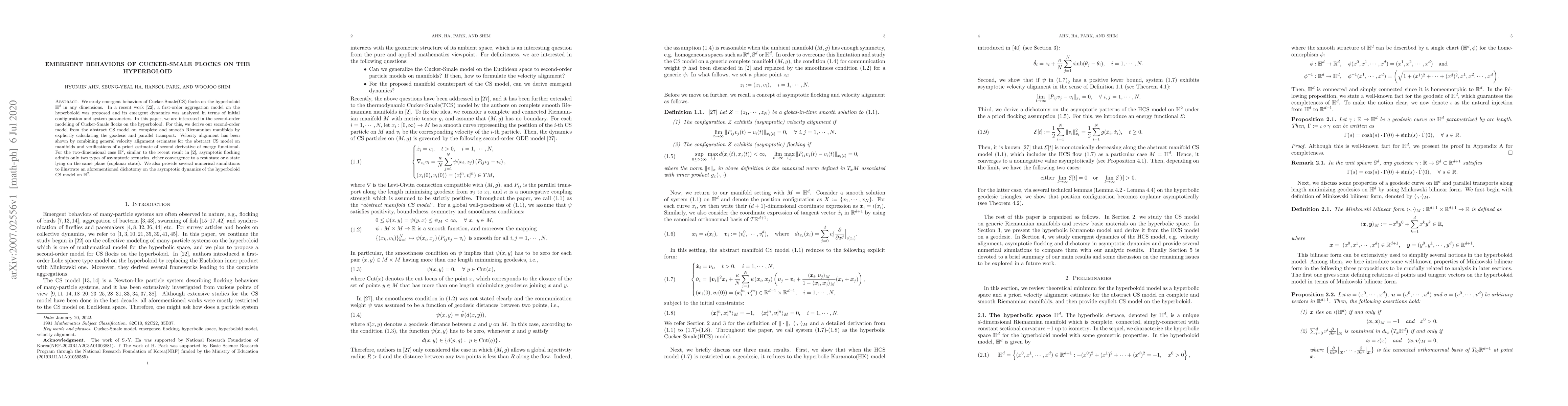 This paper investigates the second-order dynamics of Cucker-Smale flocks on the hyperboloid, deriving a model from the abstract CS model on Riemannian manifolds. It shows that for $\mathbb{H}^2$, asymptotic flocking results in either convergence to a rest state or a coplanar state, supported by numerical simulations.