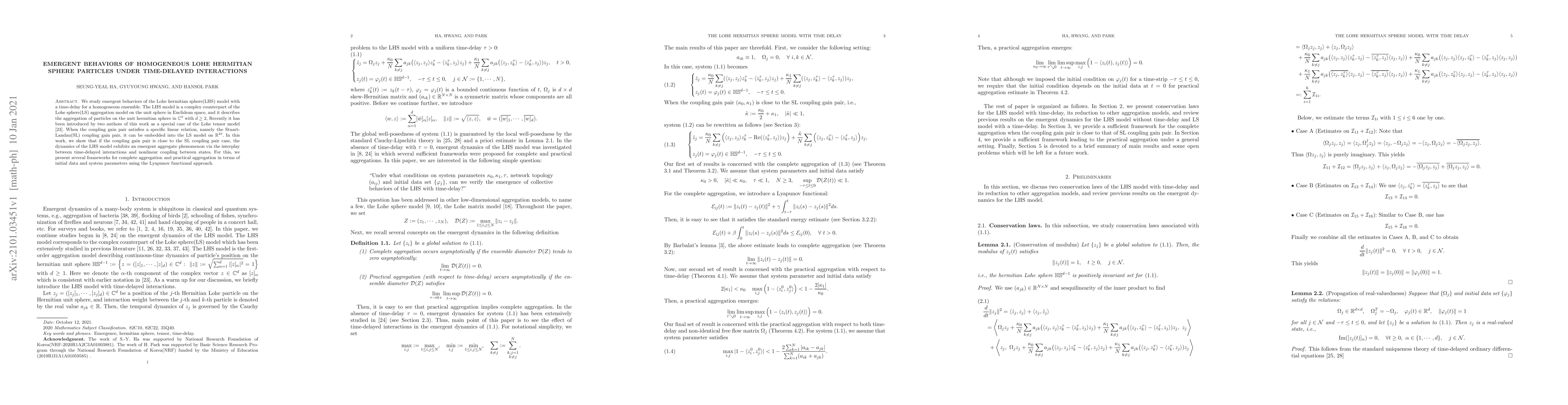 Researchers study how particles on a hermitian sphere interact with time-delays, finding that certain conditions can lead to emergent aggregate behavior. They provide frameworks for predicting this behavior under specific initial data and system parameters.