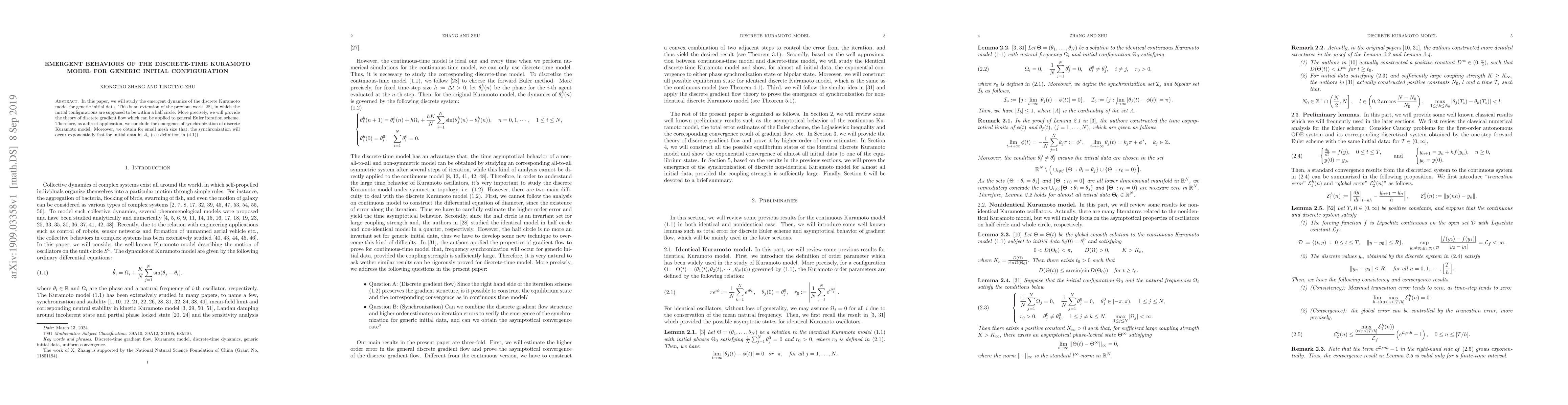 This paper extends the discrete Kuramoto model to generic initial configurations, providing a theory of discrete gradient flow applicable to general Euler iteration schemes. It concludes the emergence of synchronization in the model, which occurs exponentially fast for initial data in a specified set A_1.