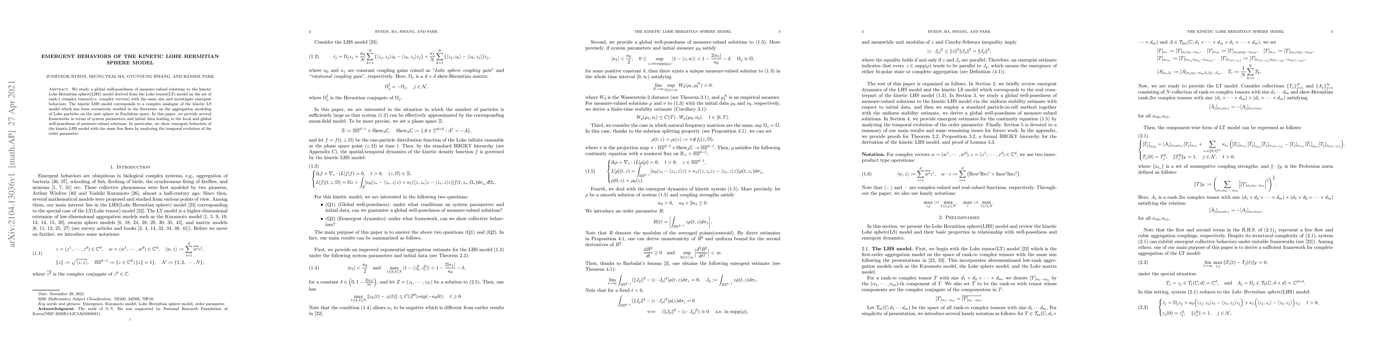 Researchers studied the kinetic Lohe Hermitian sphere model, finding emergent behaviors in measure-valued solutions under specific system parameters and initial data conditions.