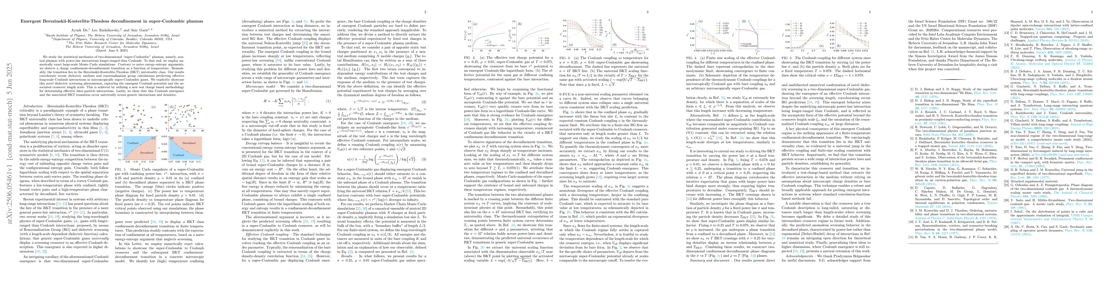 Researchers found a transition in 2D super-Coulombic plasmas from confinement to deconfinement as temperature increases, occurring within the Berezinskii-Kosterlitz-Thouless universality class.
