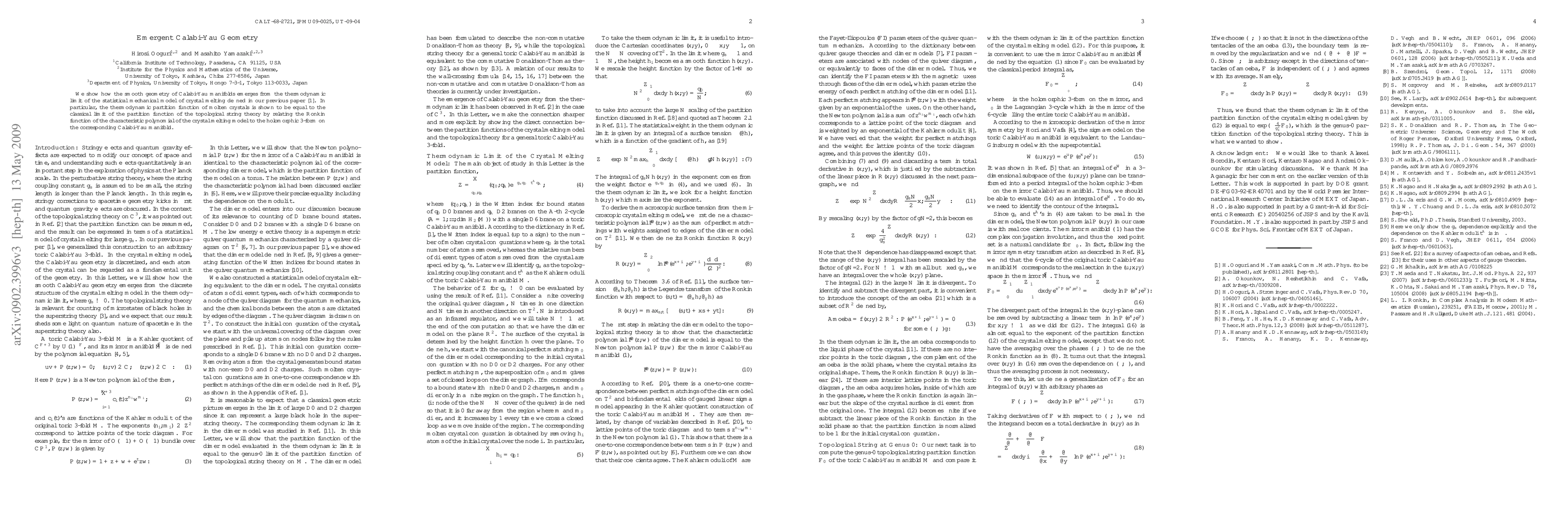 This paper demonstrates the emergence of Calabi-Yau geometry from the thermodynamic limit of a statistical mechanical model of crystal melting. It links the partition function of molten crystals to the topological string theory, showing a correspondence between the Ronkin function and the holomorphic 3-form on the Calabi-Yau manifold.