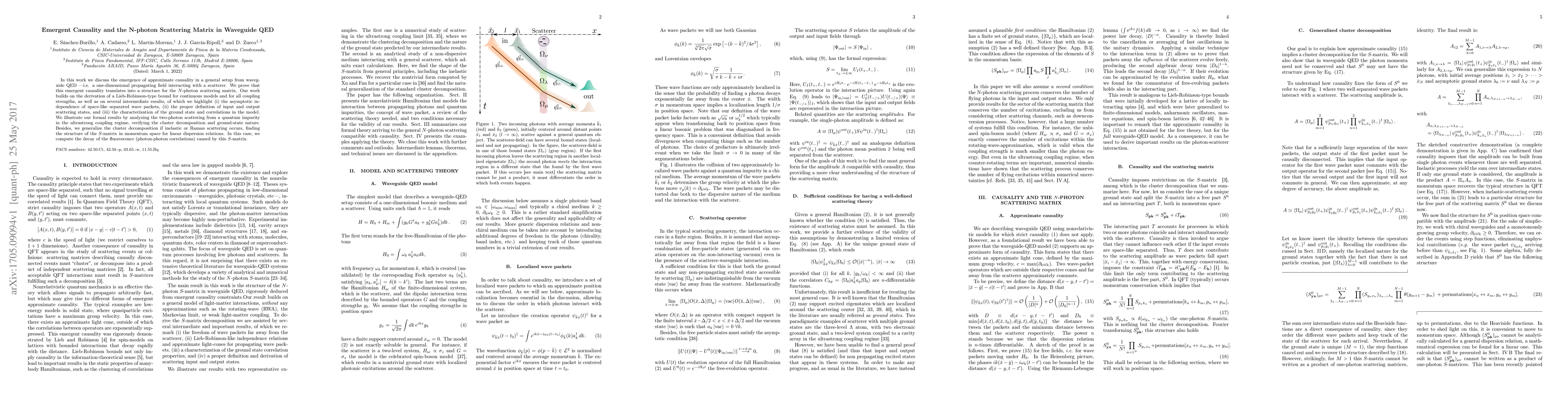 The paper presents a detailed derivation of the emergent causality structure in waveguide QED and its implications for the N-photon scattering matrix, including a Lieb-Robinson-type bound for all coupling strengths and a proper definition of input and output scattering states.