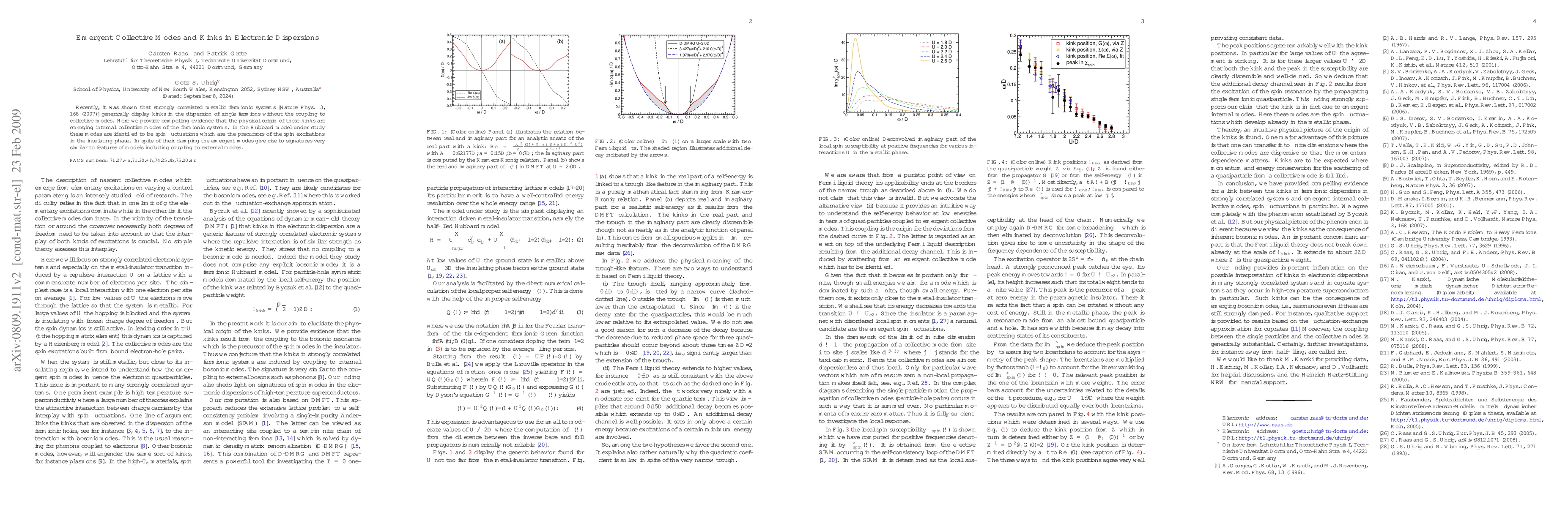 Researchers found that strongly correlated metallic fermionic systems exhibit kinks in single-particle dispersion due to emerging internal collective modes, specifically spin fluctuations, which precede insulating phase spin excitations.