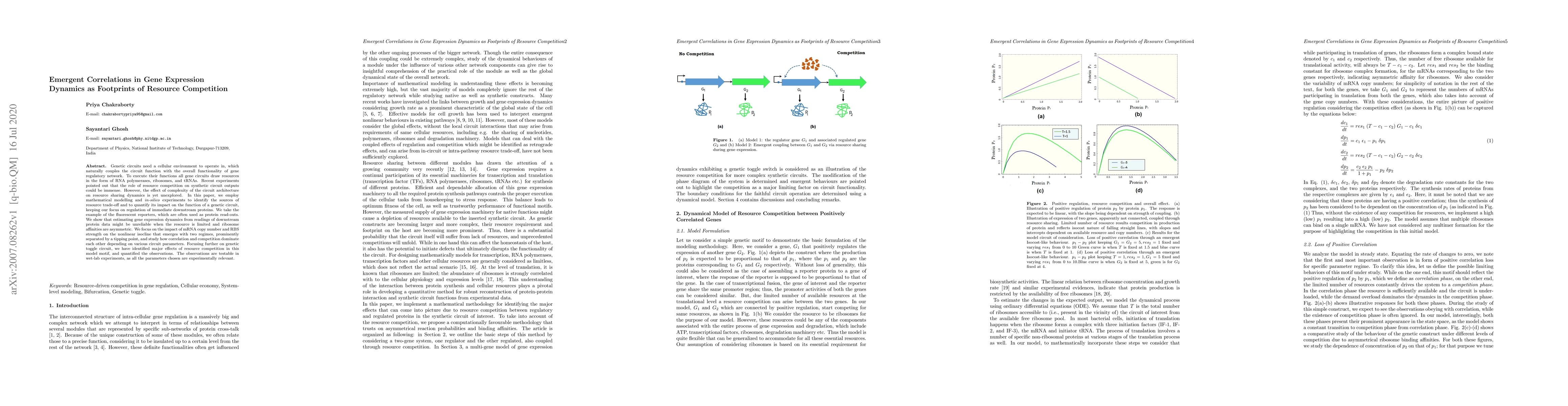 This paper uses mathematical modeling to explore how resource competition affects gene expression dynamics in genetic circuits, particularly focusing on the regulation of fluorescent reporters. It identifies emergent correlations and competition effects influenced by mRNA copy number and ribosome binding site strength, revealing that resource limitations can lead to unreliable gene expression estimates.