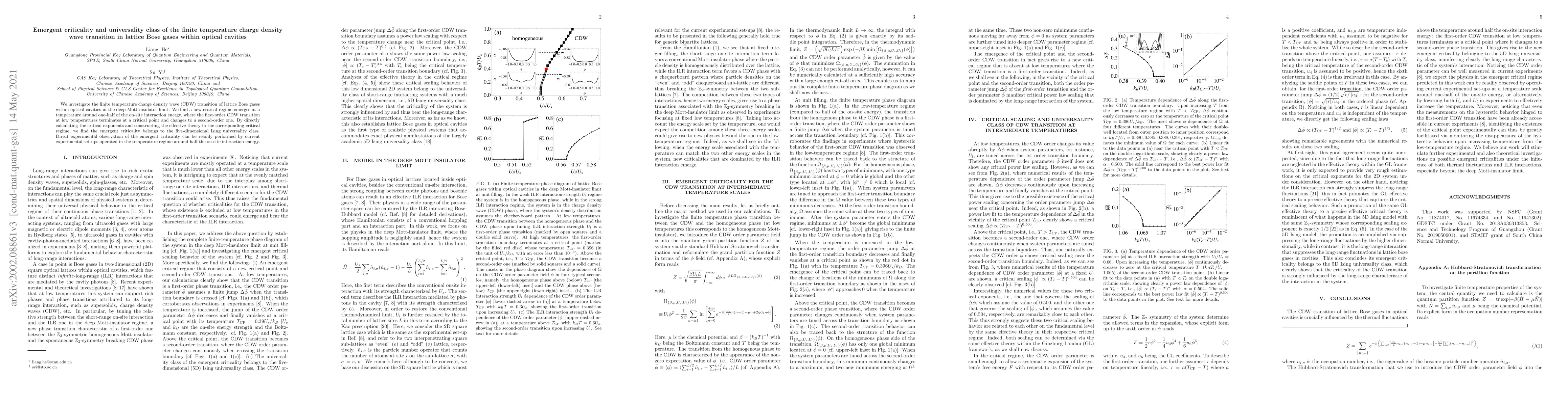 We investigate the finite temperature charge density wave (CDW) transition of lattice Bose gases within optical cavities in the deep Mott-insulator limit. We find a new critical regime emerges at a temperature around one-half of the on-site interaction energy, where the first order CDW transition at low temperatures terminates at a critical point and changes to a second order one. By directly calculating the critical exponents and constructing the effective theory in the corresponding critical regime, we find the emergent criticality belongs to the five-dimensional Ising universality class. Direct experimental observation of the emergent criticality can be readily performed by current experimental set-ups operated in the temperature regime around half the on-site interaction energy.