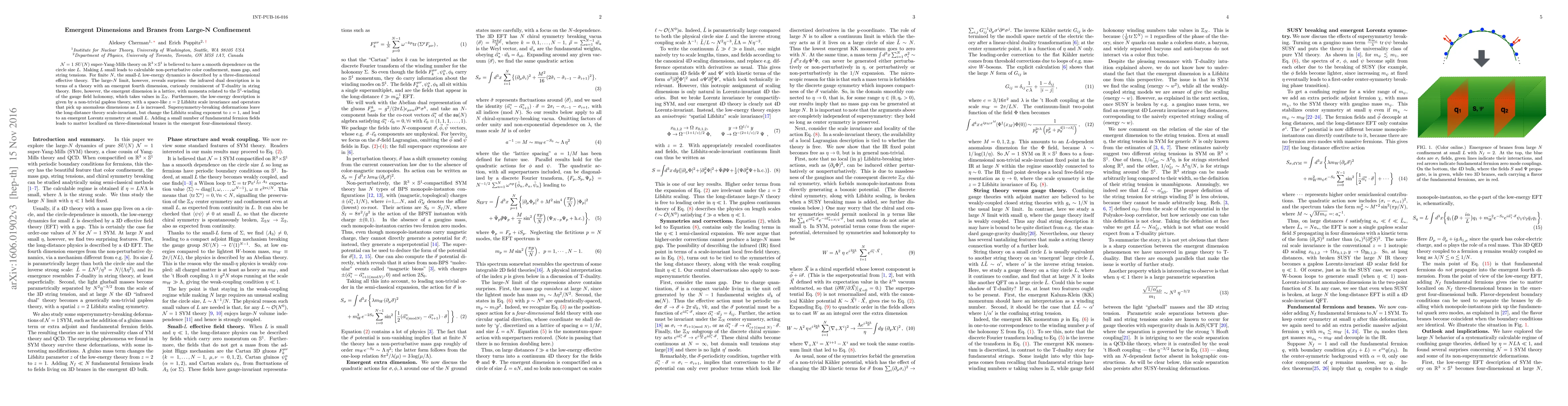 $\mathcal{N}=1$ $SU(N)$ super-Yang-Mills theory on $\mathbb{R}^3\times S^1$ is believed to have a smooth dependence on the circle size $L$. Making $L$ small leads to calculable non-perturbative color confinement, mass gap, and string tensions. For finite $N$, the small-$L$ low-energy dynamics is described by a three-dimensional effective theory. The large-$N$ limit, however, reveals surprises: the infrared dual description is in terms of a theory with an emergent fourth dimension, curiously reminiscent of T-duality in string theory. Here, however, the emergent dimension is a lattice, with momenta related to the $S^1$-winding of the gauge field holonomy, which takes values in $\mathbb{Z}_N$. Furthermore, the low-energy description is given by a non-trivial gapless theory, with a space-like $z=2$ Lifshitz scale invariance and operators that pick up anomalous dimensions as $L$ is increased. Supersymmetry-breaking deformations leave the long-distance theory scale-invariant, but change the Lifshitz scaling exponent to $z=1$, and lead to an emergent Lorentz symmetry at small $L$. Adding a small number of fundamental fermion fields leads to matter localized on three-dimensional branes in the emergent four-dimensional theory.
