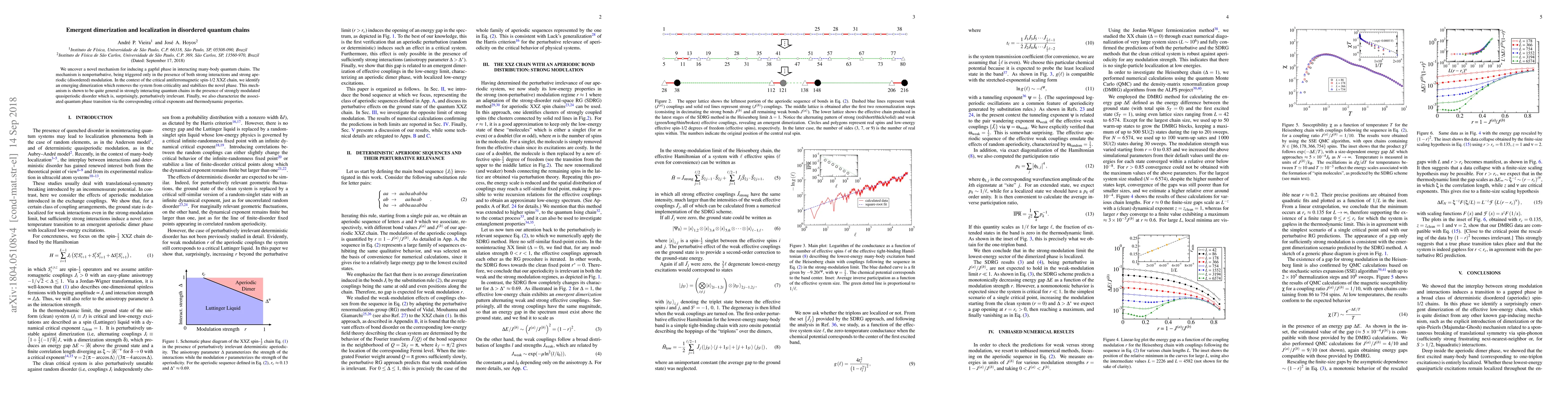 This paper reveals a nonperturbative mechanism that induces a gapful phase in interacting quantum chains through strong interactions and aperiodic disorder, exemplified by emergent dimerization in the critical antiferromagnetic spin-1/2 XXZ chain. The study also characterizes the quantum phase transition with critical exponents and thermodynamic properties.