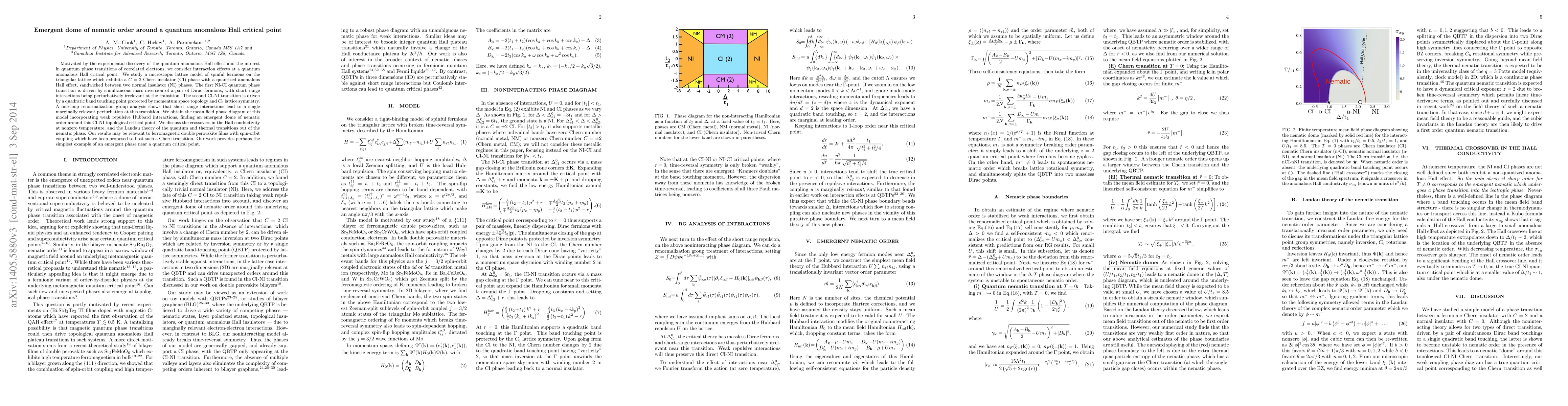 Researchers discovered an emergent nematic dome of order near a quantum phase transition between a topological insulator and a ferromagnetic material, driven by interactions in a triangular lattice model.
