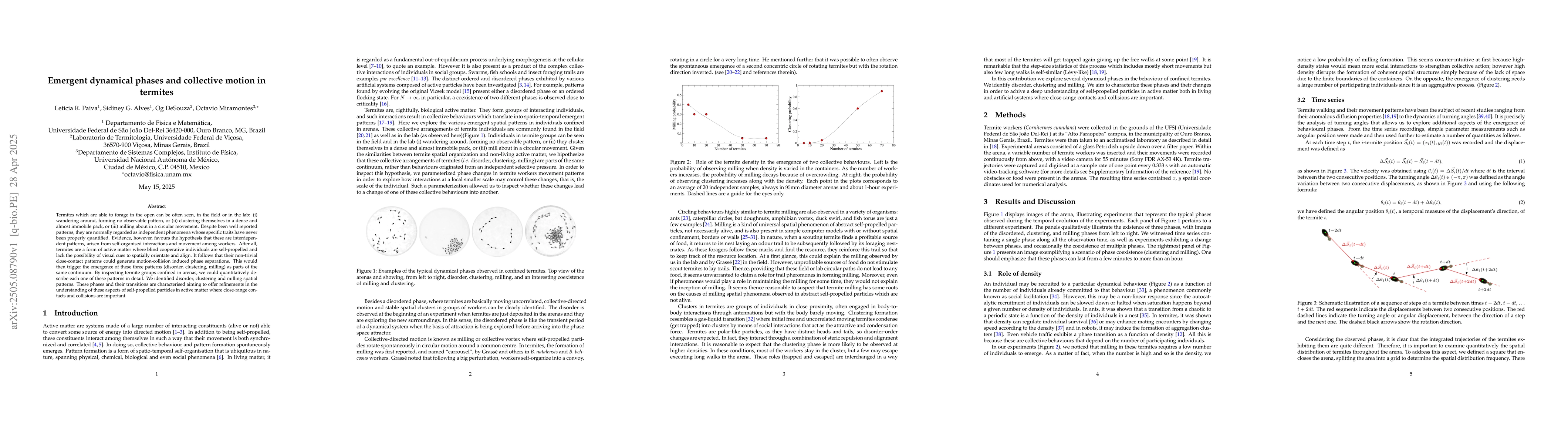 Researchers studied termite behavior, finding that wandering, clustering, and milling patterns are interconnected phases of motion, arising from self-organized interactions among workers.