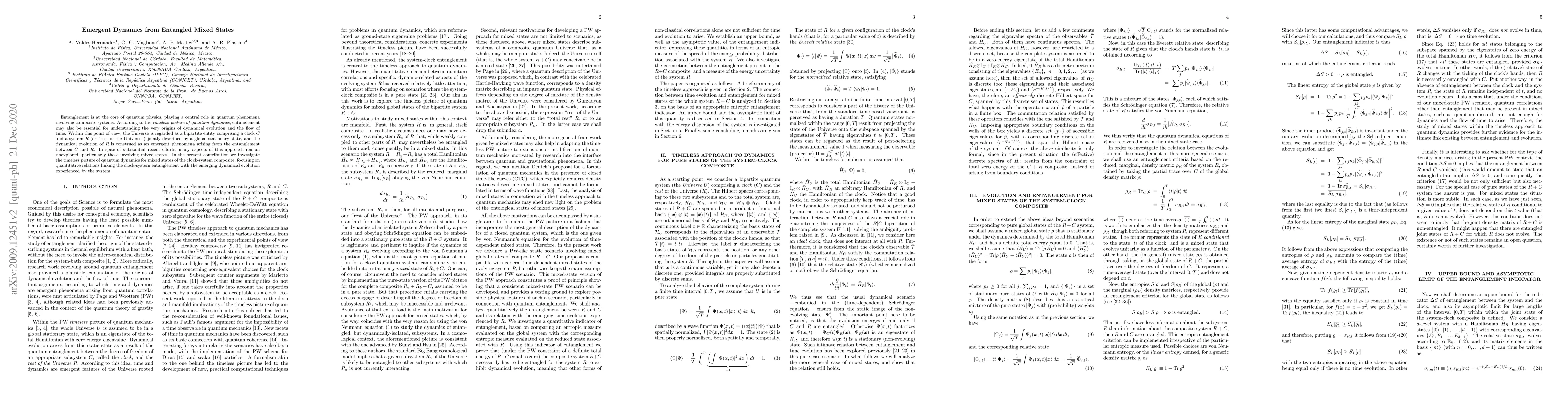 Entanglement is at the core of quantum physics, playing a central role in quantum phenomena involving composite systems. According to the timeless picture of quantum dynamics, entanglement may also be essential for understanding the very origins of dynamical evolution and the flow of time. Within this point of view, the Universe is regarded as a bipartite entity comprising a clock $C$ and a system $R$ (or "rest of the Universe") jointly described by a global stationary state, and the dynamical evolution of $R$ is construed as an emergent phenomena arising from the entanglement between $C$ and $R$. In spite of substantial recent efforts, many aspects of this approach remain unexplored, particularly those involving mixed states. In the present contribution we investigate the timeless picture of quantum dynamics for mixed states of the clock-system composite, focusing on quantitative relations linking the clock-system entanglement with the emerging dynamical evolution experienced by the system.