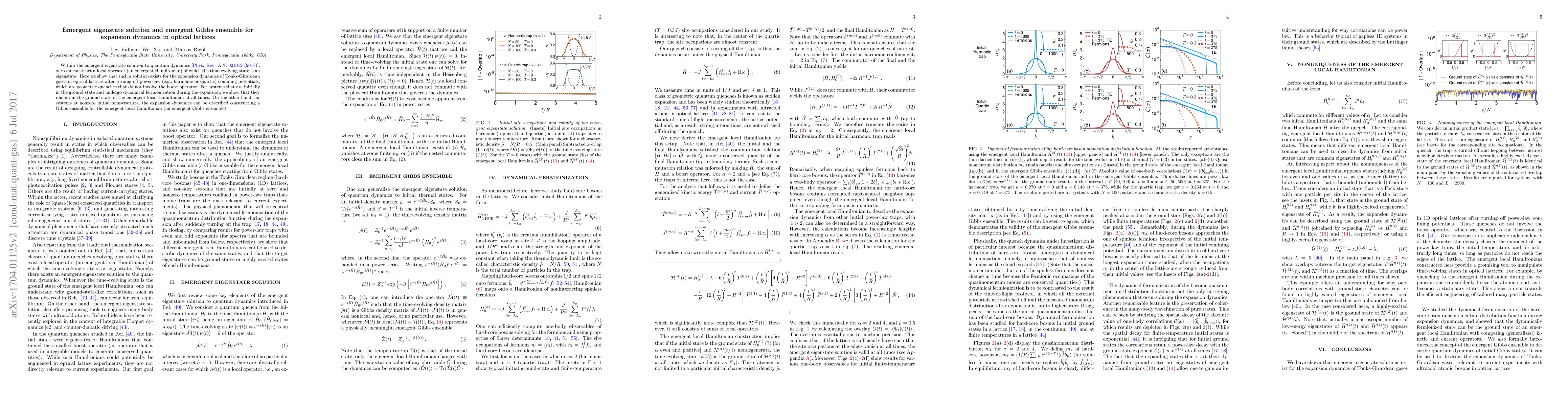 This paper demonstrates the existence of an emergent eigenstate solution for the expansion dynamics of Tonks-Girardeau gases in optical lattices following geometric quenches. It shows that these gases remain in the ground state of an emergent local Hamiltonian during expansion, while systems with initial nonzero temperatures follow an emergent Gibbs ensemble.