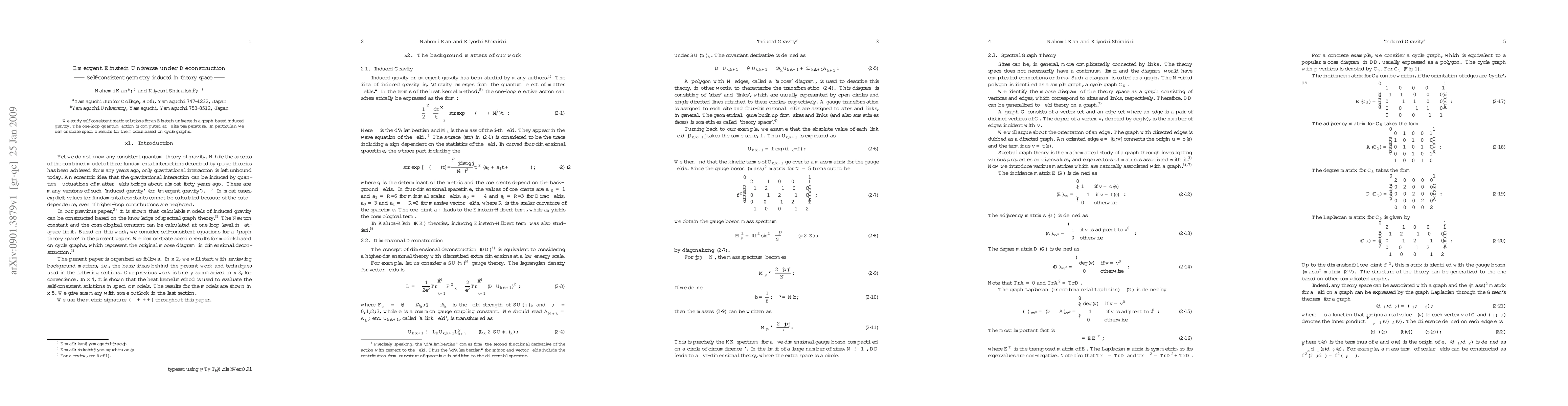 The paper presents a method for constructing self-consistent cosmological solutions for an Einstein universe using graph-based induced gravity, leveraging spectral graph theory to control UV divergences and induce finite Newton's constant and cosmological constant.