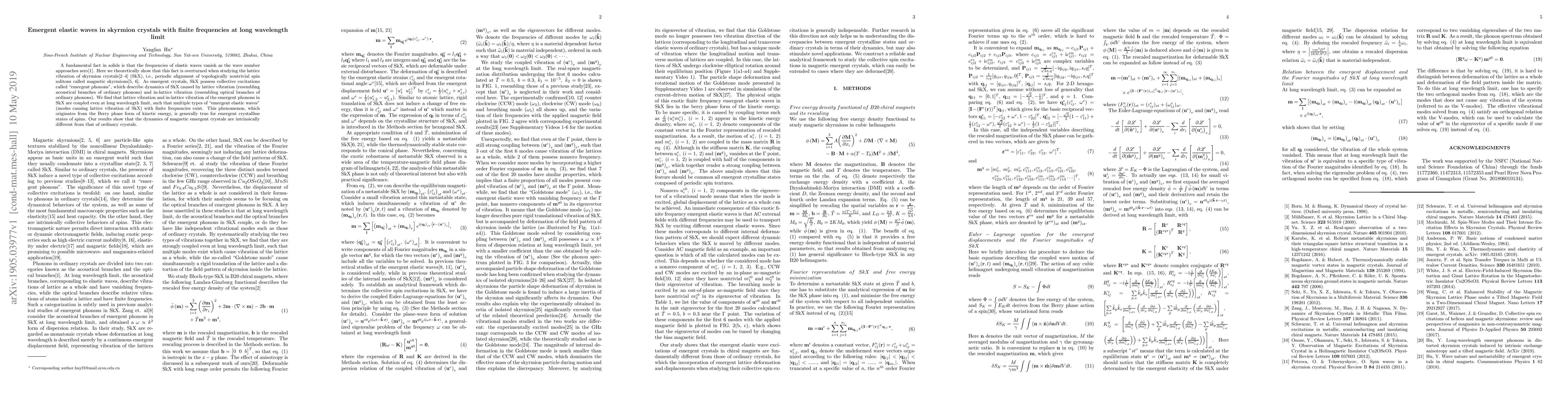 This paper demonstrates that skyrmion crystals exhibit emergent elastic waves with finite frequencies at long wavelengths, contrary to the usual behavior of elastic waves in solids. The study reveals that lattice vibrations in these magnetic crystals lead to coupled emergent phonons, resulting in distinct dynamics compared to conventional crystals.
