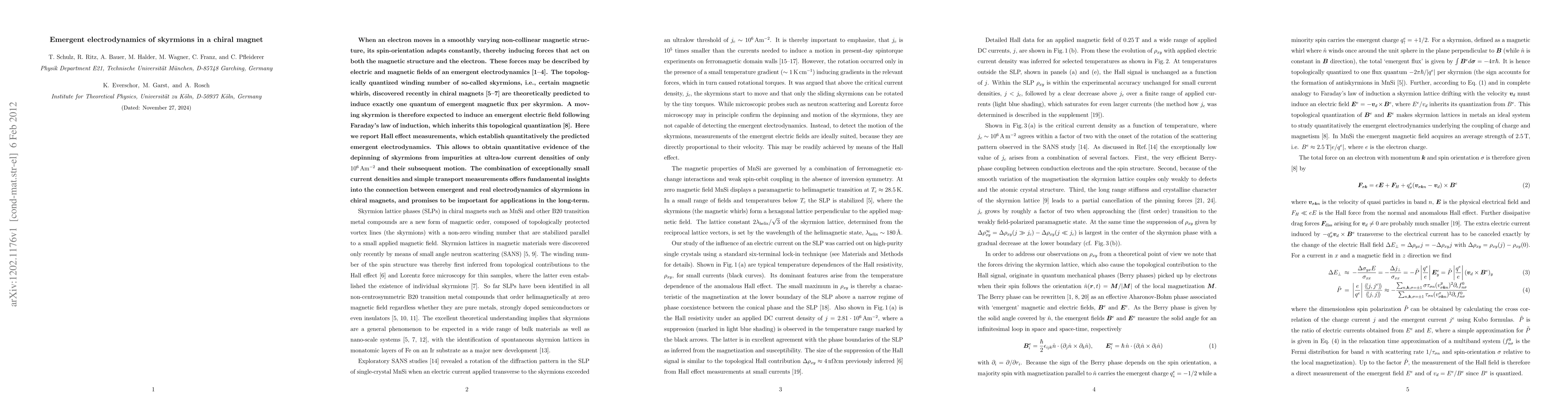 This paper reports on Hall effect measurements that quantitatively confirm the emergent electrodynamics of skyrmions in chiral magnets, providing evidence for their motion at ultra-low current densities and revealing fundamental insights into the interaction between emergent and real electrodynamics.