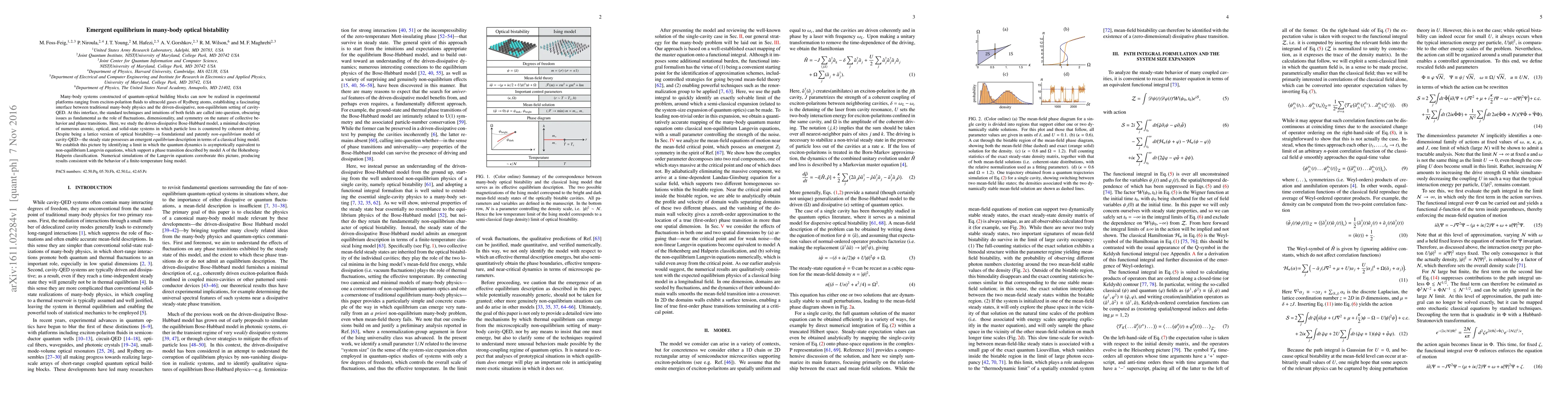 Many-body systems constructed of quantum-optical building blocks can now be realized in experimental platforms ranging from exciton-polariton fluids to ultracold gases of Rydberg atoms, establishing a fascinating interface between traditional many-body physics and the driven-dissipative, non-equilibrium setting of cavity-QED. At this interface, the standard techniques and intuitions of both fields are called into question, obscuring issues as fundamental as the role of fluctuations, dimensionality, and symmetry on the nature of collective behavior and phase transitions. Here, we study the driven-dissipative Bose-Hubbard model, a minimal description of numerous atomic, optical, and solid-state systems in which particle loss is countered by coherent driving. Despite being a lattice version of optical bistability---a foundational and patently non-equilibrium model of cavity-QED---the steady state possesses an emergent equilibrium description in terms of a classical Ising model. We establish this picture by identifying a limit in which the quantum dynamics is asymptotically equivalent to non-equilibrium Langevin equations, which support a phase transition described by model A of the Hohenberg-Halperin classification. Numerical simulations of the Langevin equations corroborate this picture, producing results consistent with the behavior of a finite-temperature Ising model.