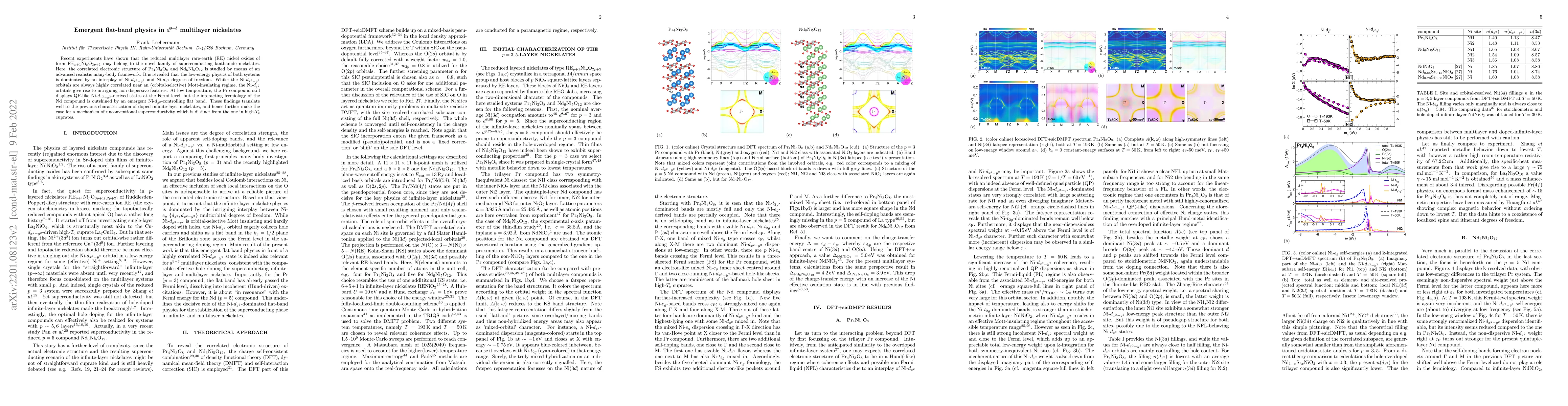 Recent experiments have shown that the reduced multilayer rare-earth (RE) nickel oxides of form RE$_{p+1}$Ni$_p$O$_{2p+2}$ may belong to the novel family of superconducting lanthanide nickelates. Here, the correlated electronic structure of Pr$_{4}$Ni$_3$O$_{8}$ and Nd$_{6}$Ni$_5$O$_{12}$ is studied by means of an advanced realistic many-body framework. It is revealed that the low-energy physics of both systems is dominated by an interplay of Ni-$d_{x^2-y^2}$ and Ni-$d_{z^2}$ degrees of freedom. Whilst the Ni-$d_{x^2-y^2}$ orbitals are always highly correlated near an (orbital-selective) Mott-insulating regime, the Ni-$d_{z^2}$ orbitals give rise to intriguing non-dispersive features. At low temperature, the Pr compound still displays QP-like Ni-$d_{x^2-y^2}$-derived states at the Fermi level, but the interacting fermiology of the Nd compound is outshined by an emergent Ni-$d_{z^2}$-controlling flat band. These findings translate well to the previous characterization of doped infinite-layer nickelates, and hence further make the case for a mechanism of unconventional superconductivity which is distinct from the one in high-$T_{\rm c}$ cuprates.