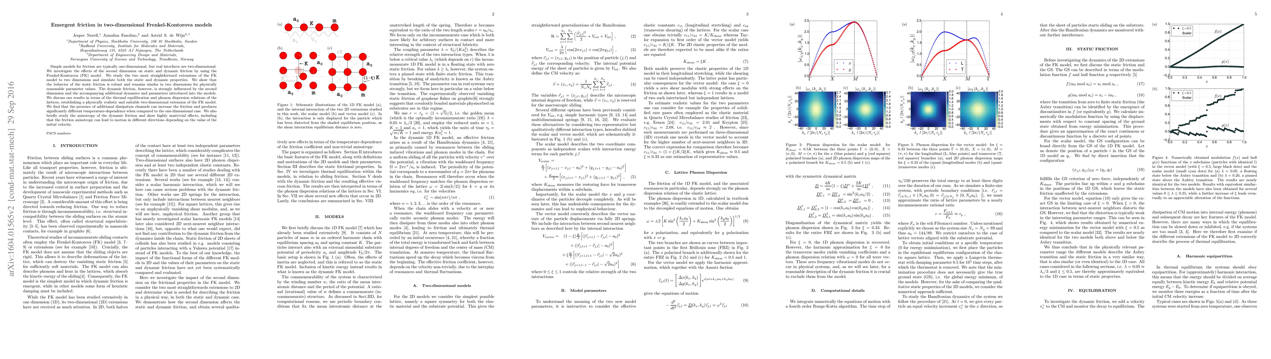This paper investigates how introducing a second dimension affects static and dynamic friction in the Frenkel-Kontorova model, finding that while static friction remains consistent, dynamic friction is significantly influenced by additional dynamics and parameters, including temperature-dependent effects and anisotropy that can alter motion directionality based on initial velocity.