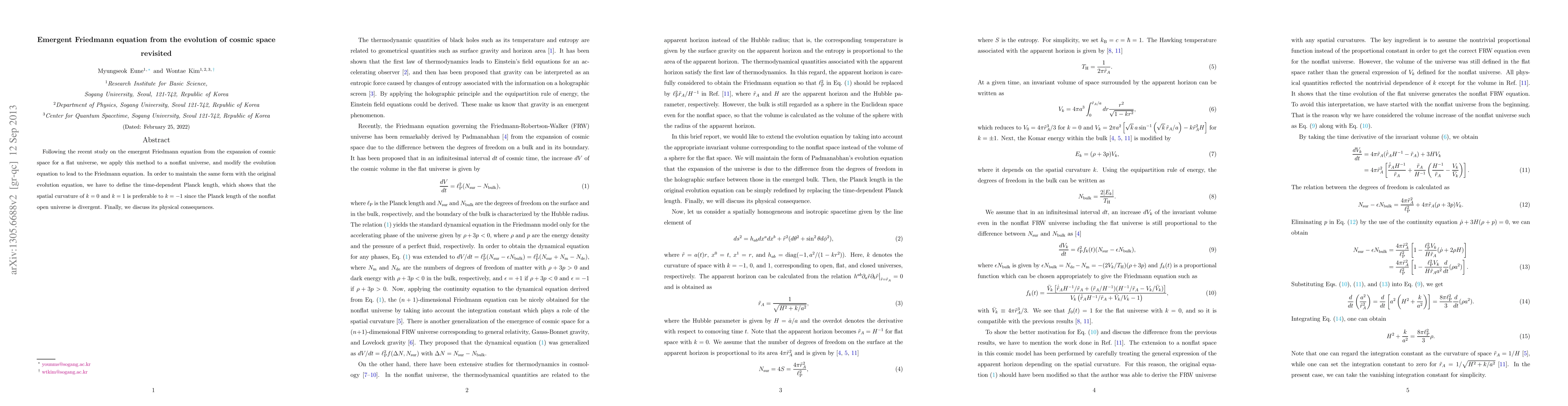 Following the recent study on the emergent Friedmann equation from the expansion of cosmic space for a flat universe, we apply this method to a nonflat universe, and modify the evolution equation to lead to the Friedmann equation. In order to maintain the same form with the original evolution equation, we have to define the time-dependent Plank constant, which shows that the spatial curvature of $k=0$ and $k=1$ is preferable to $k=-1$ since the Plank constant of the nonflat open universe is divergent. Finally, we discuss its physical consequences.