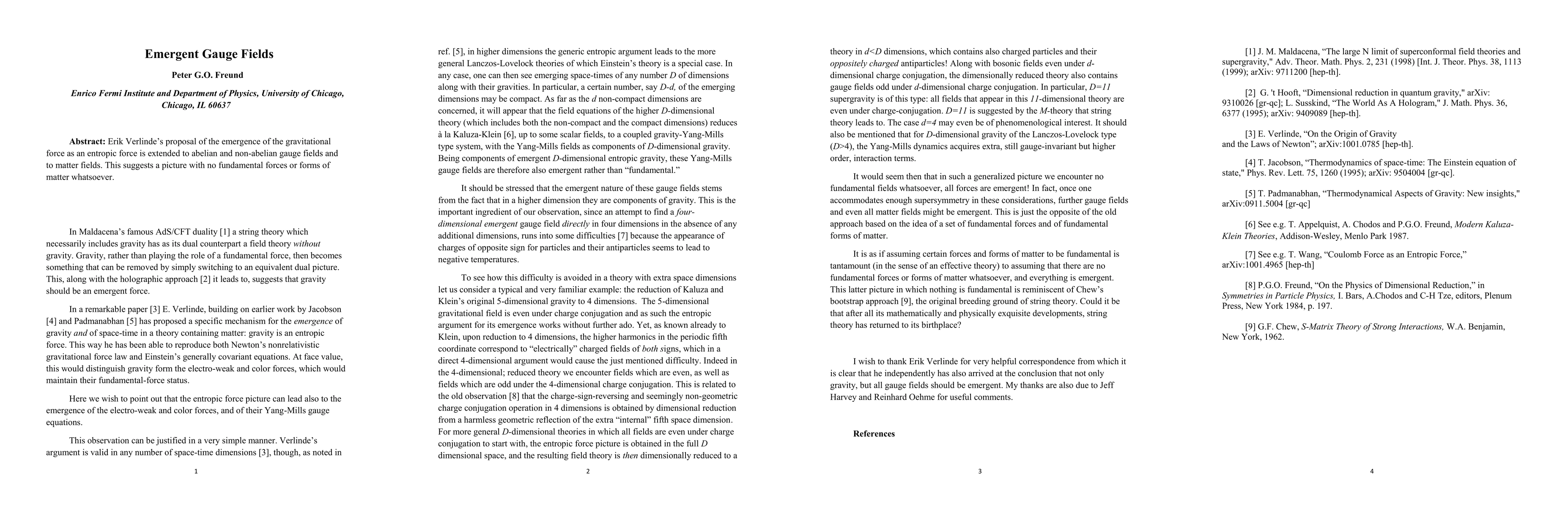 Research proposes that gauge fields emerge from entropic forces, suggesting a universe without fundamental forces or matter.