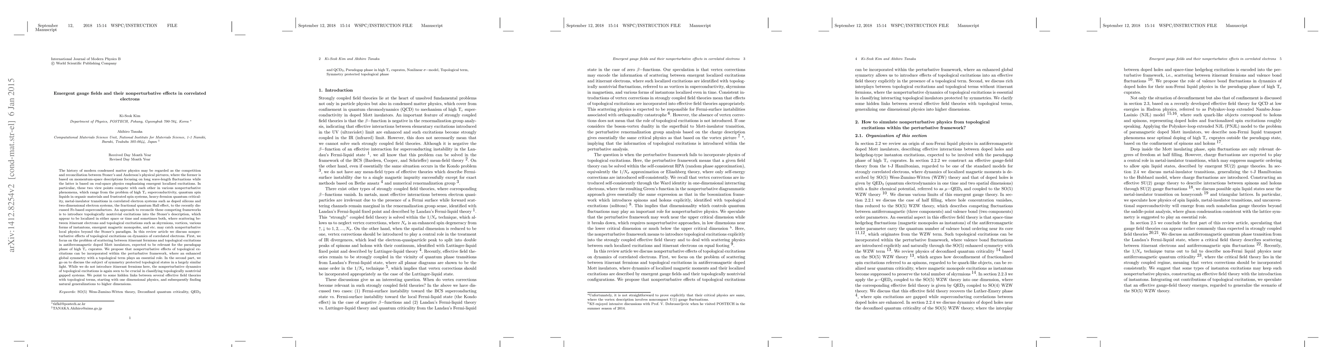 The history of modern condensed matter physics may be regarded as the competition and reconciliation between Stoner's and Anderson's physical pictures, where the former is based on momentum-space descriptions focusing on long wave-length fluctuations while the latter is based on real-space physics emphasizing emergent localized excitations. In particular, these two view points compete with each other in various nonperturbative phenomena, which range from the problem of high T$_{c}$ superconductivity, quantum spin liquids in organic materials and frustrated spin systems, heavy-fermion quantum criticality, metal-insulator transitions in correlated electron systems such as doped silicons and two-dimensional electron systems, the fractional quantum Hall effect, to the recently discussed Fe-based superconductors. An approach to reconcile these competing frameworks is to introduce topologically nontrivial excitations into the Stoner's description, which appear to be localized in either space or time and sometimes both, where scattering between itinerant electrons and topological excitations such as skyrmions, vortices, various forms of instantons, emergent magnetic monopoles, and etc. may catch nonperturbative local physics beyond the Stoner's paradigm. In this review article we discuss nonperturbative effects of topological excitations on dynamics of correlated electrons. ......
